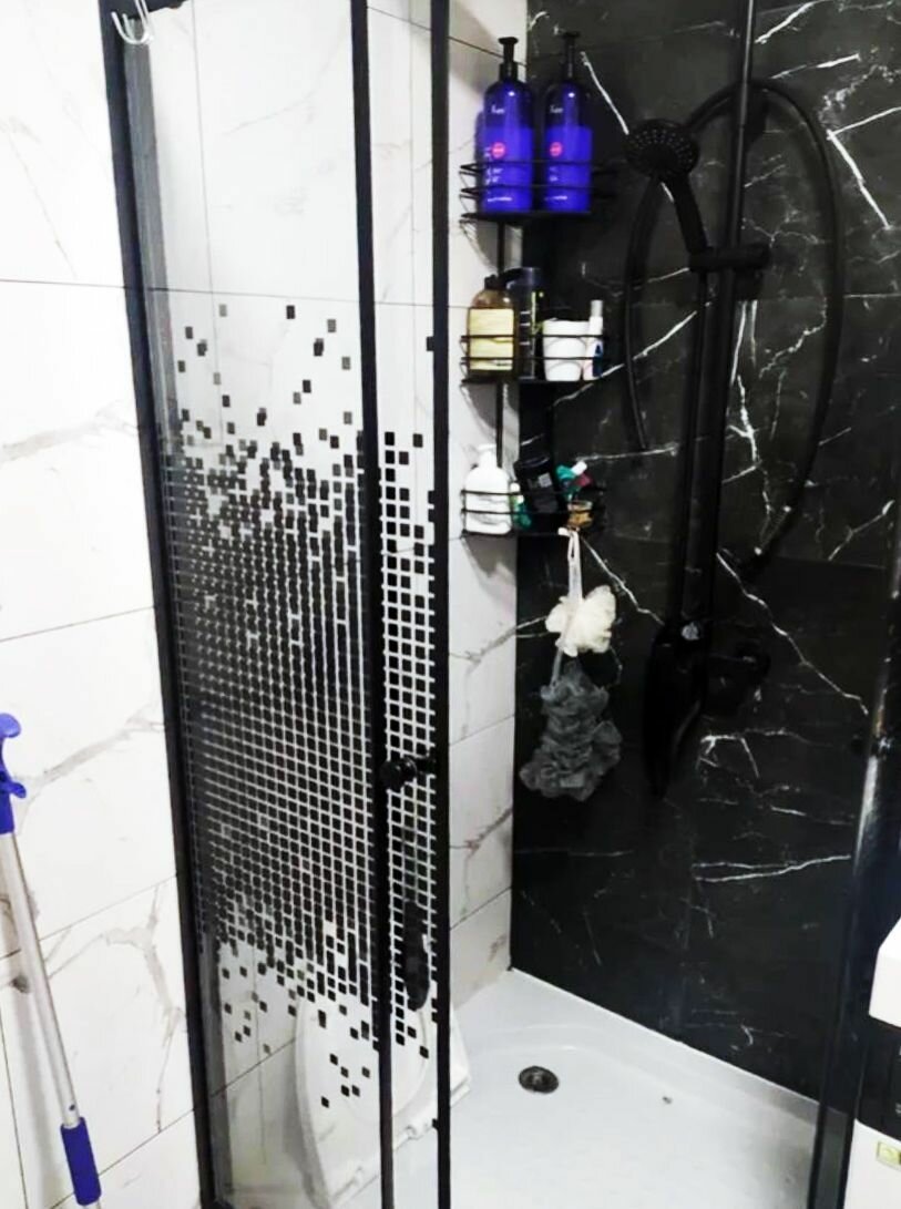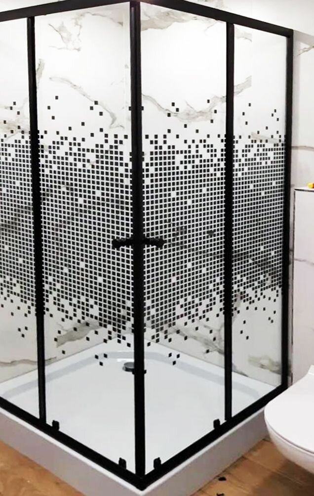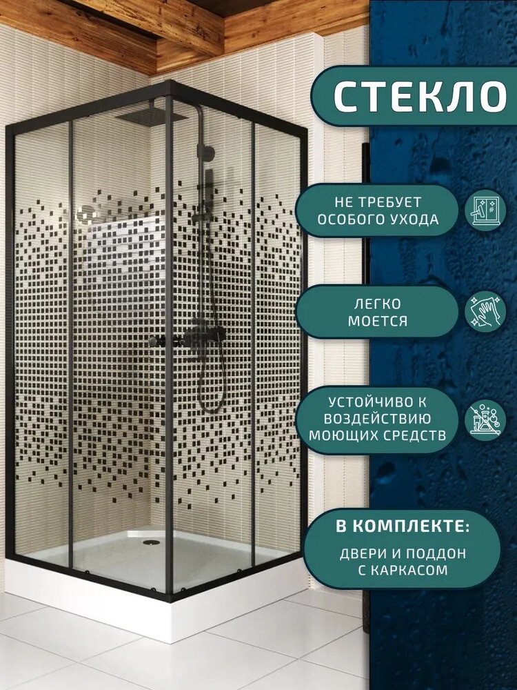 СохранитьДушевой уголок BAU Stil квадратный с поддоном 100x100х195, прозрачное закаленное стекло с черным рисунком 5 мм, черный матовый профиль интересное: