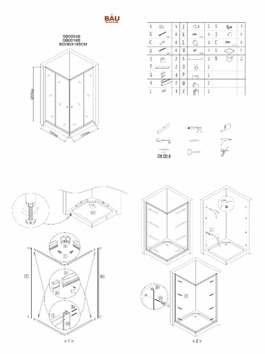 Душевой уголок BAU Stil Hit с поддоном 100x100х195, прозрачное закаленное стекло, хромированный профиль
