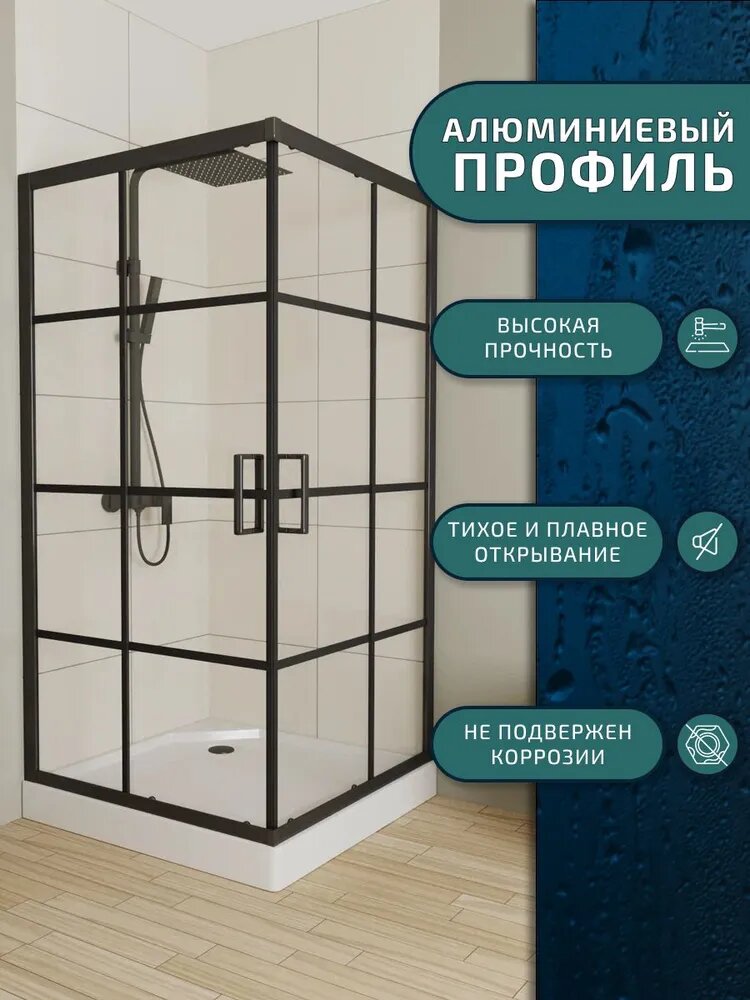 Купить Душевой уголок квадратный BAU Stil square 100х100х195, с поддоном 12,5 см, закаленное стекло толщиной 5 мм, черные профили, с сифоном