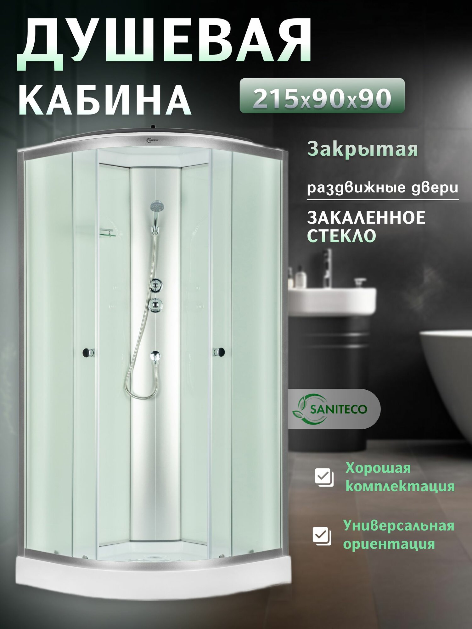 Душевая кабина Saniteco SN-90W, 90x90 см, с высоким поддоном, белая интересное: