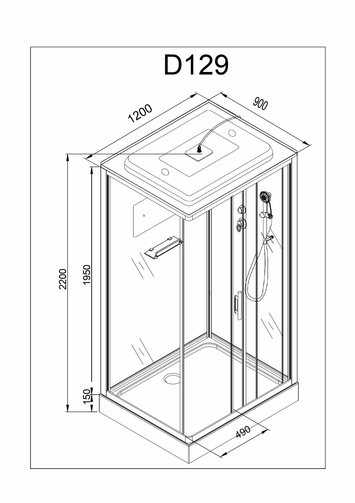 Душевая кабина Deto D129S (120x90x220) низкий поддон, стекло матовое, с электрикой интересное: