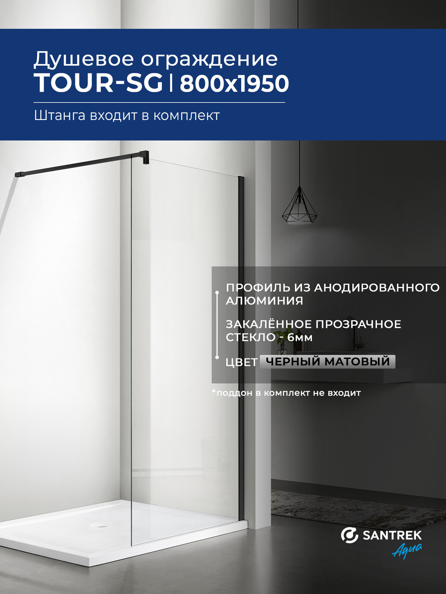 СохранитьДушевое ограждение SANTREK Тour - SG-800-С 800*1950 стекло Прозр 6мм, профиль Чёрный (штанга в комплекте) интересное: