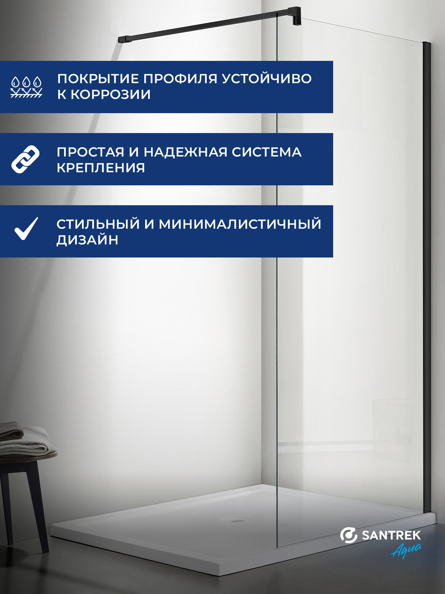 Душевое ограждение SANTREK Тour - SG-1000-С 100*195 стекло Прозр 6мм, профиль Чёрный (штанга в комплекте)