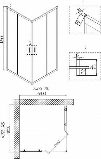 Душевой уголок Black&White Stellar Wind S101 800х800