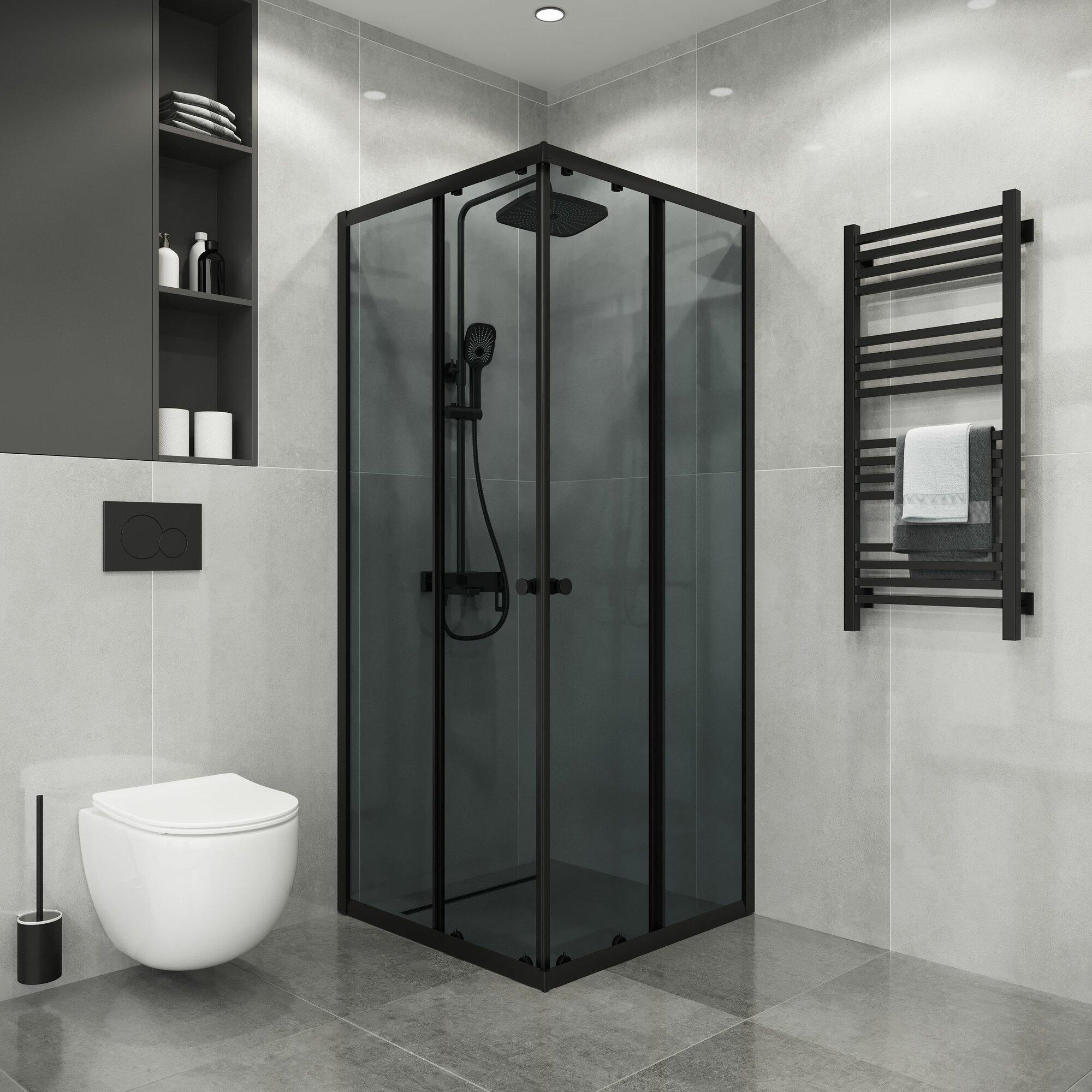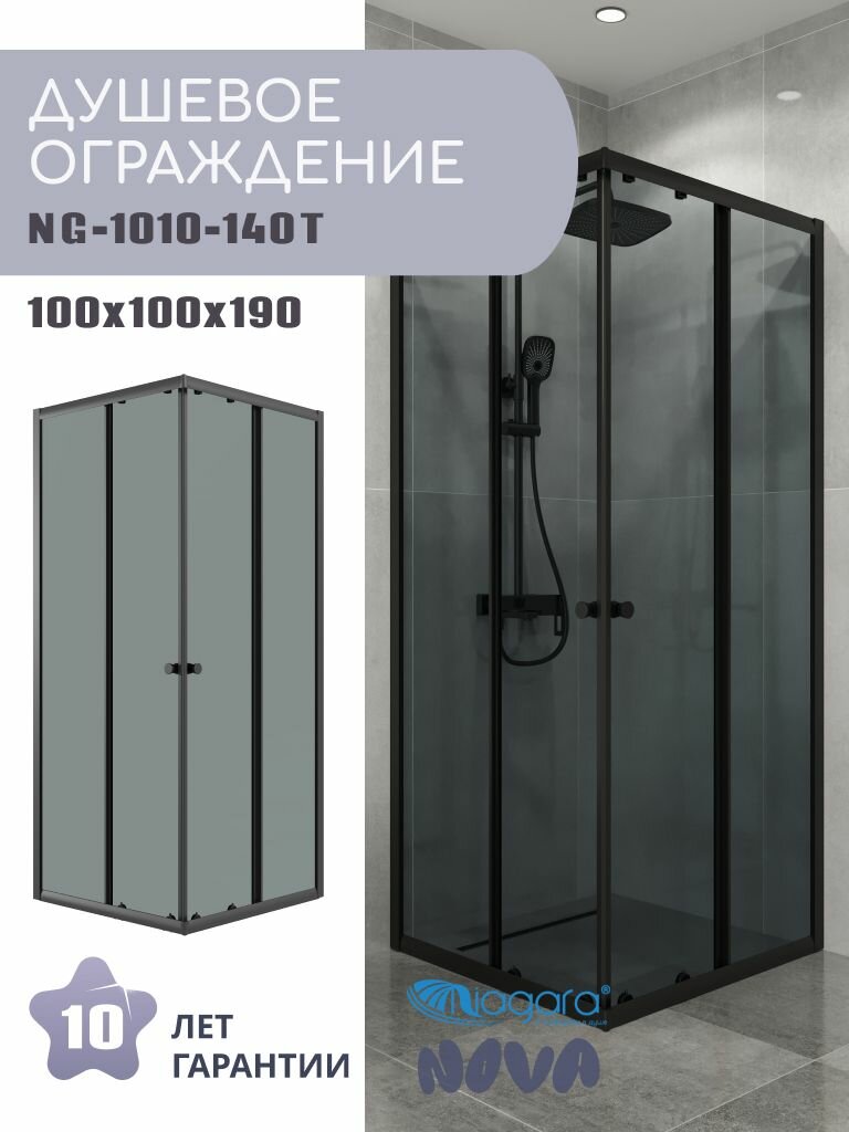 Купить Душевое ограждение Niagara Eco NG-1010-14QT (100х100х190) квадрат, раздвижное, черный, стекло тонированное,1 место
