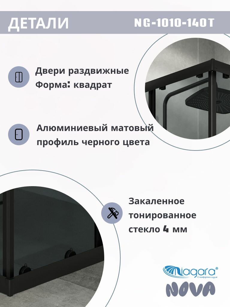 Душевое ограждение Niagara Eco NG-1010-14QT (100х100х190) квадрат, раздвижное, черный, стекло тонированное,1 место интересное: