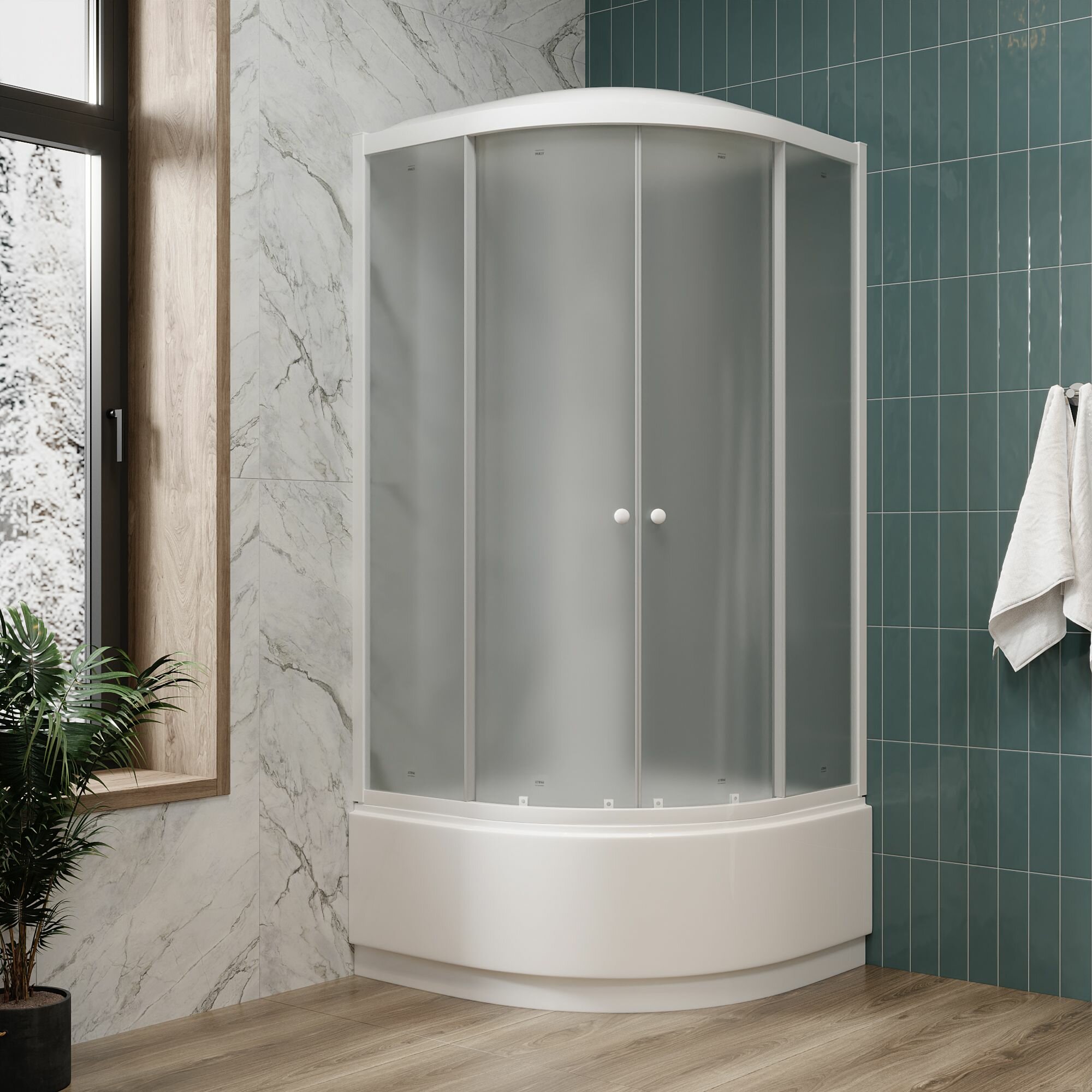 Душевая кабина Parly EFM921 (90х90х215), со средним поддоном, профиль белый, стекло матовое