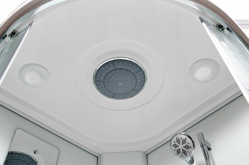 Душевая кабина Deto EM2710 (100x100x220) средний поддон, стекло узорчатое, с гидромассажем интересное: