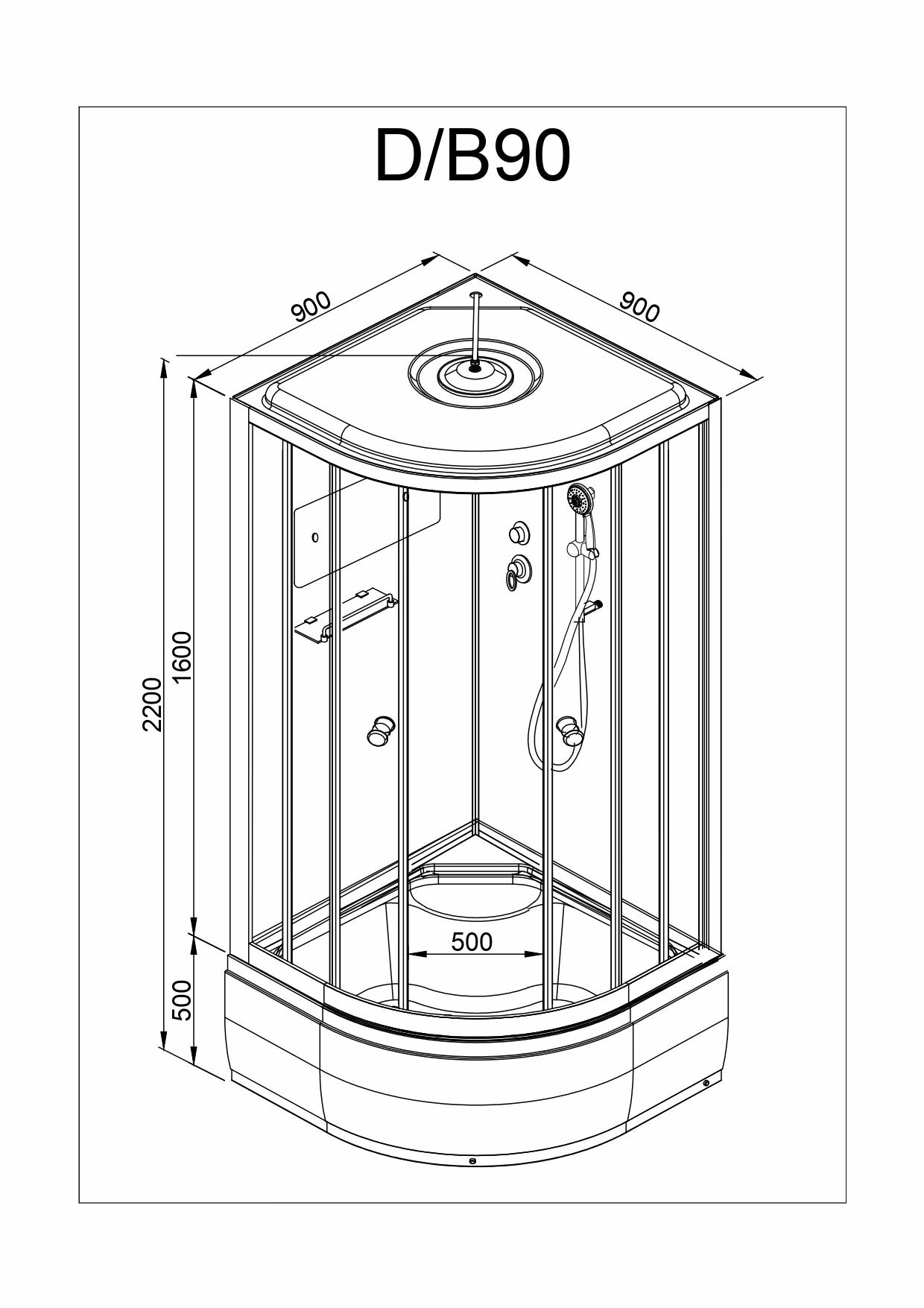 Купить Душевая кабина Deto D90S (90х90х220) высокий поддон, стекло матовое, с электрикой