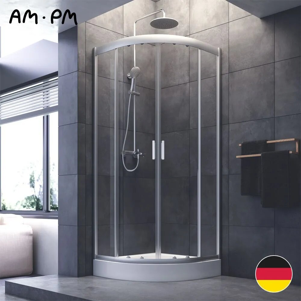 Душевой уголок AM.PM Gem 80x80 см, без поддона, 1/4 круга , профиль черный матовый, стекло закаленное прозрачное