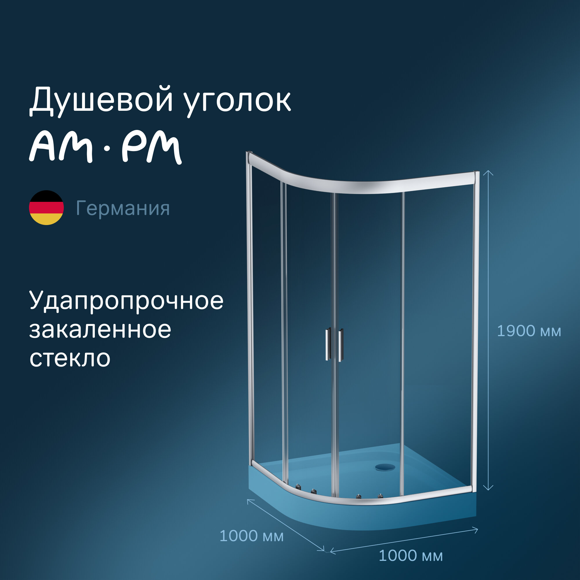 Купить Душевой уголок AM.PM Gem 100х100 см, без поддона, стекло прозрачное закаленное, профиль матовое серебро
