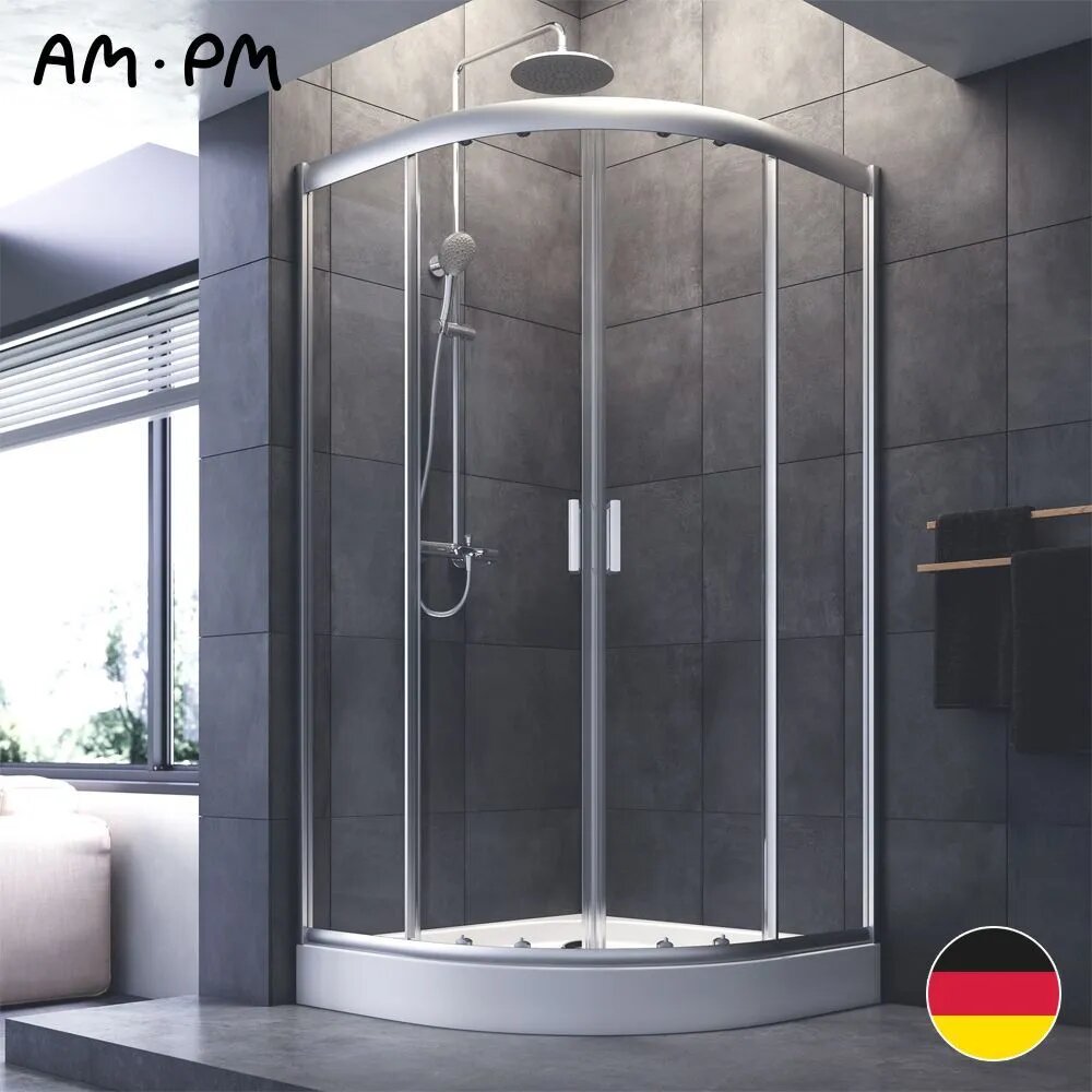Душевой уголок AM.PM Gem 80x80 см, без поддона, 1/4 круга , профиль черный матовый, стекло закаленное прозрачное
