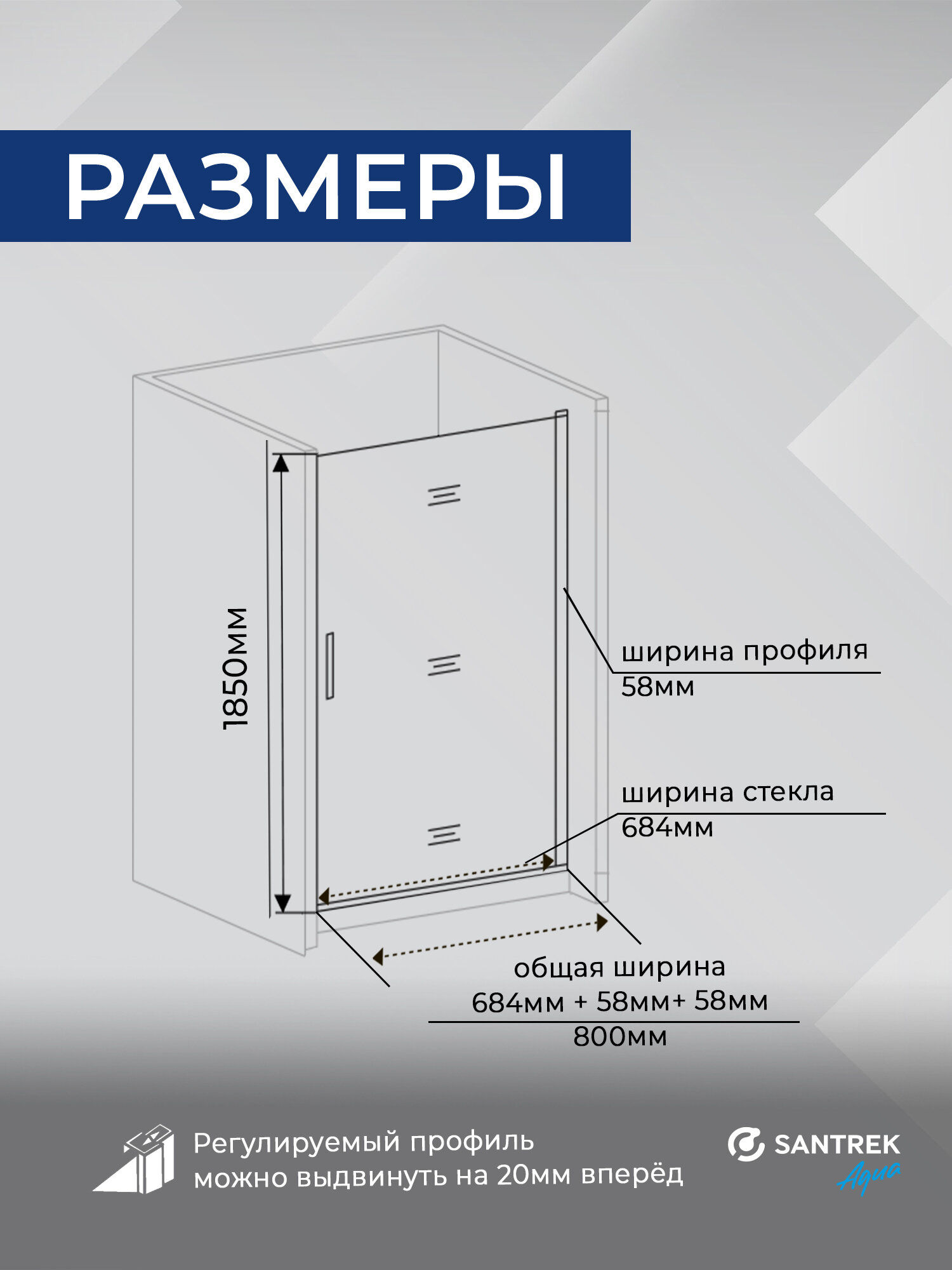Купить Душевое ограждение дверь в нишу SANTREK Luna- DP- 800-C-Chrome 800*1850 Прямое, стекло Прозр. 5мм, профиль Хром