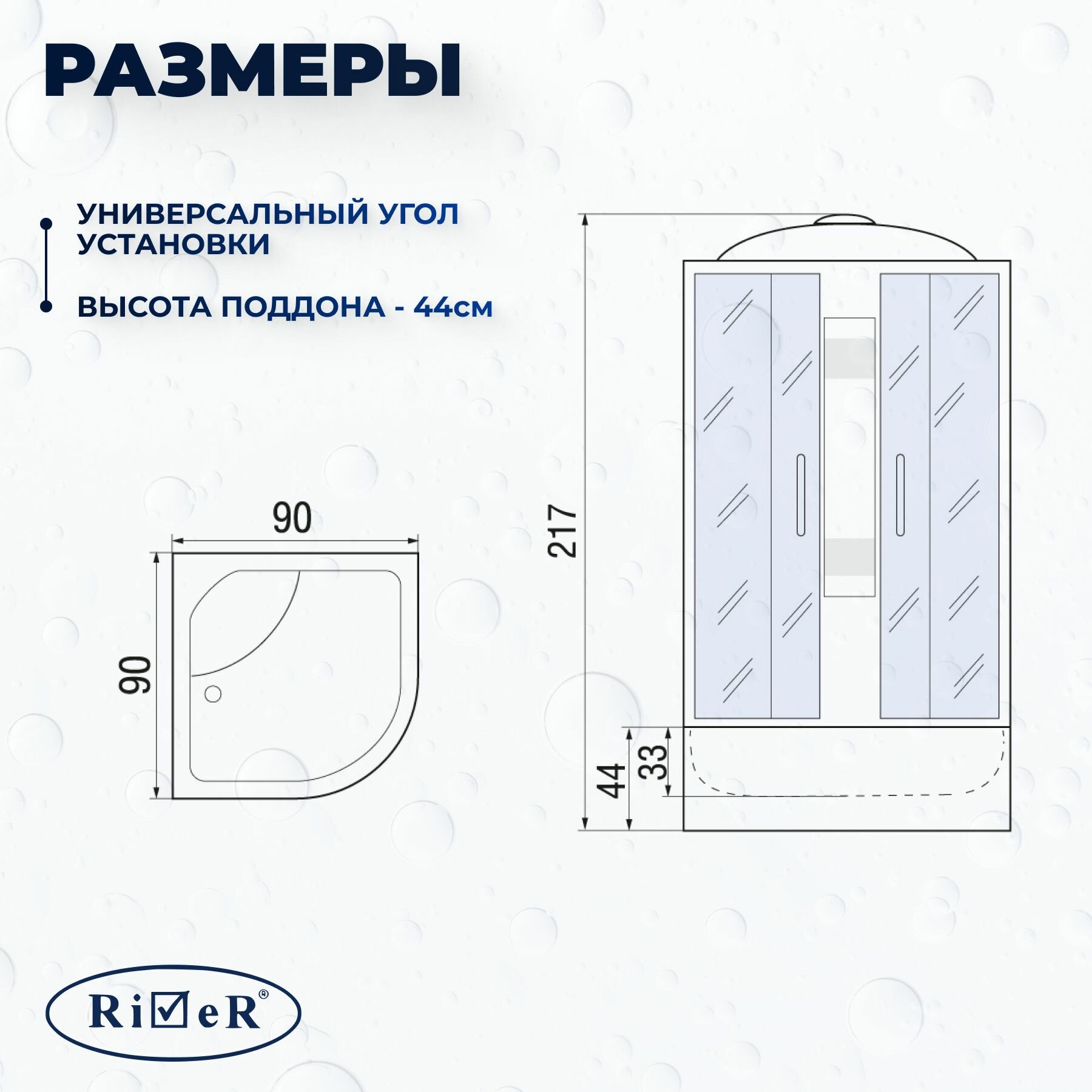 Душевая кабина River No Silicone (90x90) высокий поддон, стекло матовое, универсальная интересное: