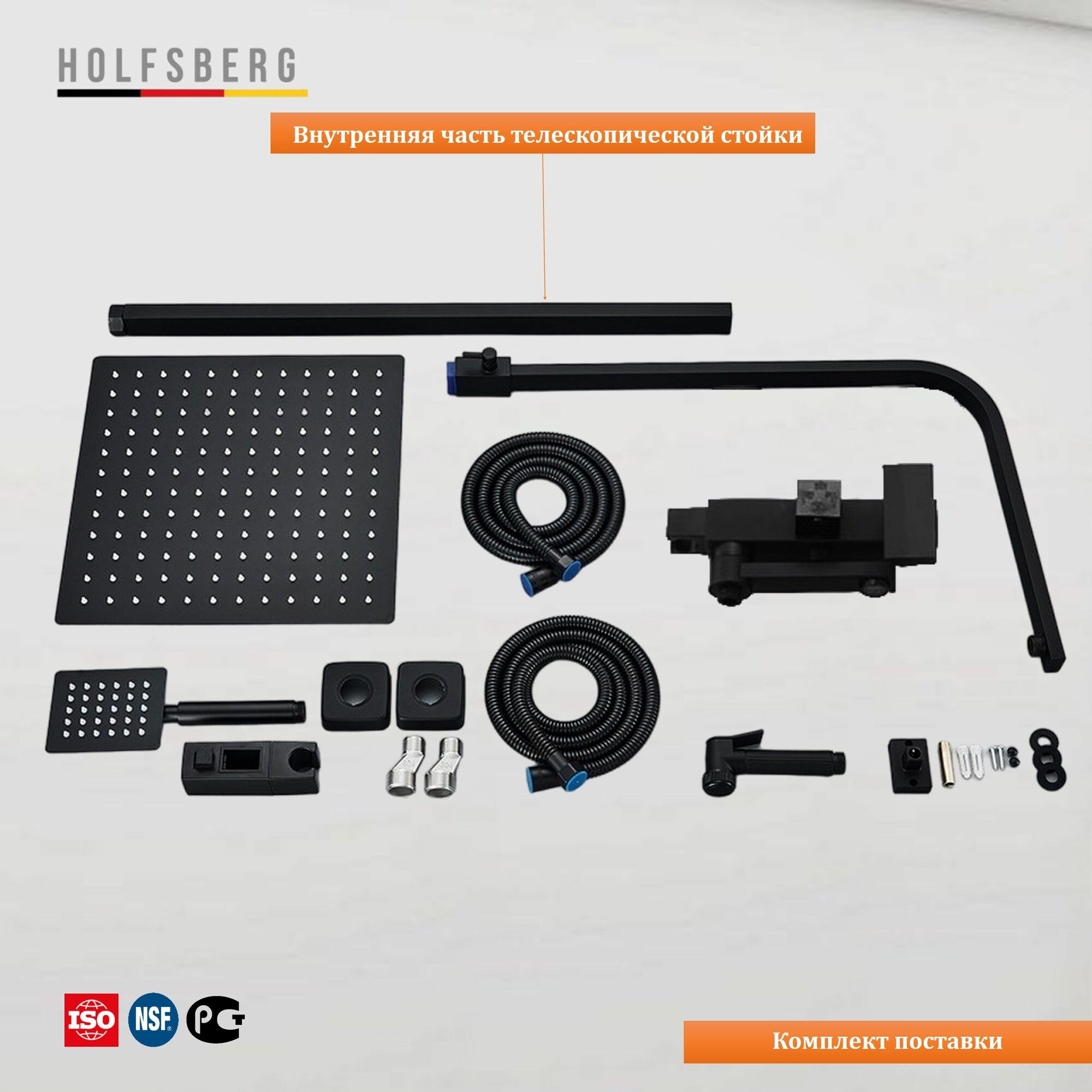 Душевая система с тропическим душем черный матовый HOLFSBERG A30 BL-2 4в1 интересное: