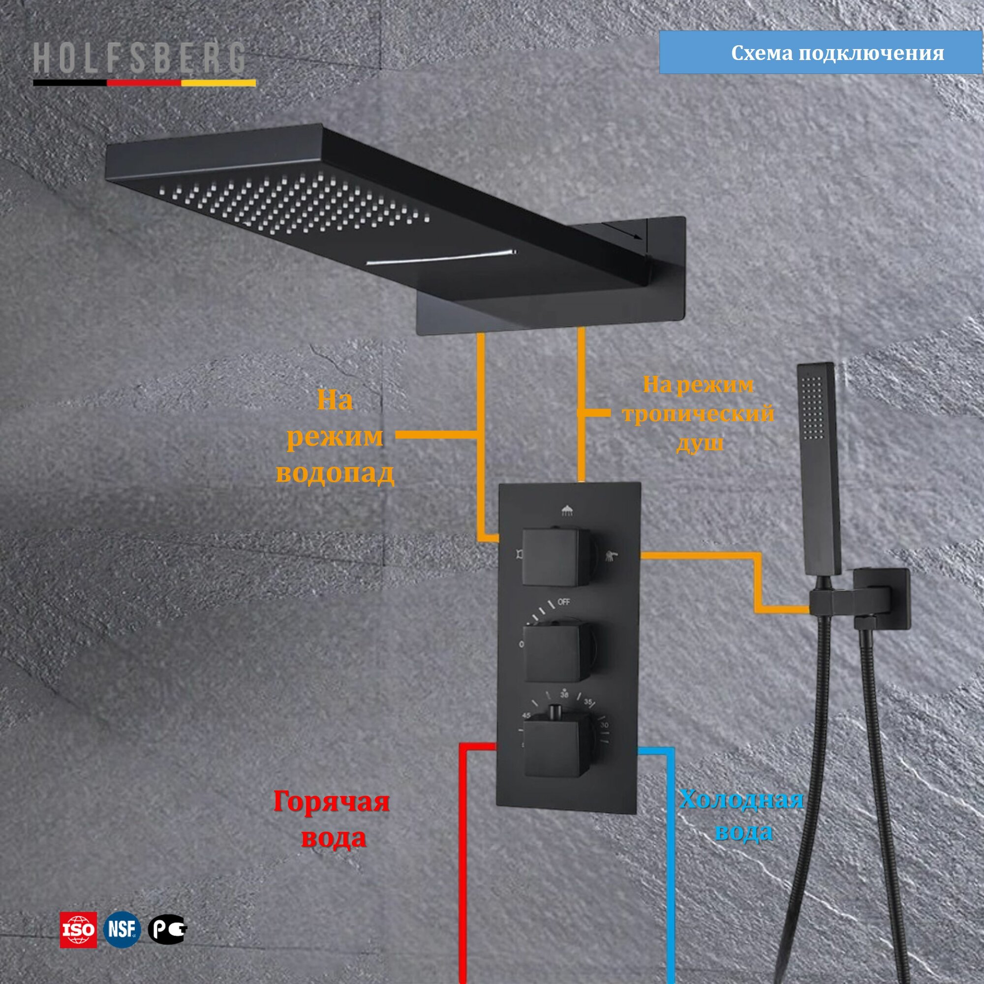 Душевая система скрытого монтажа с термостатом черная HOLFSBERG интересное: