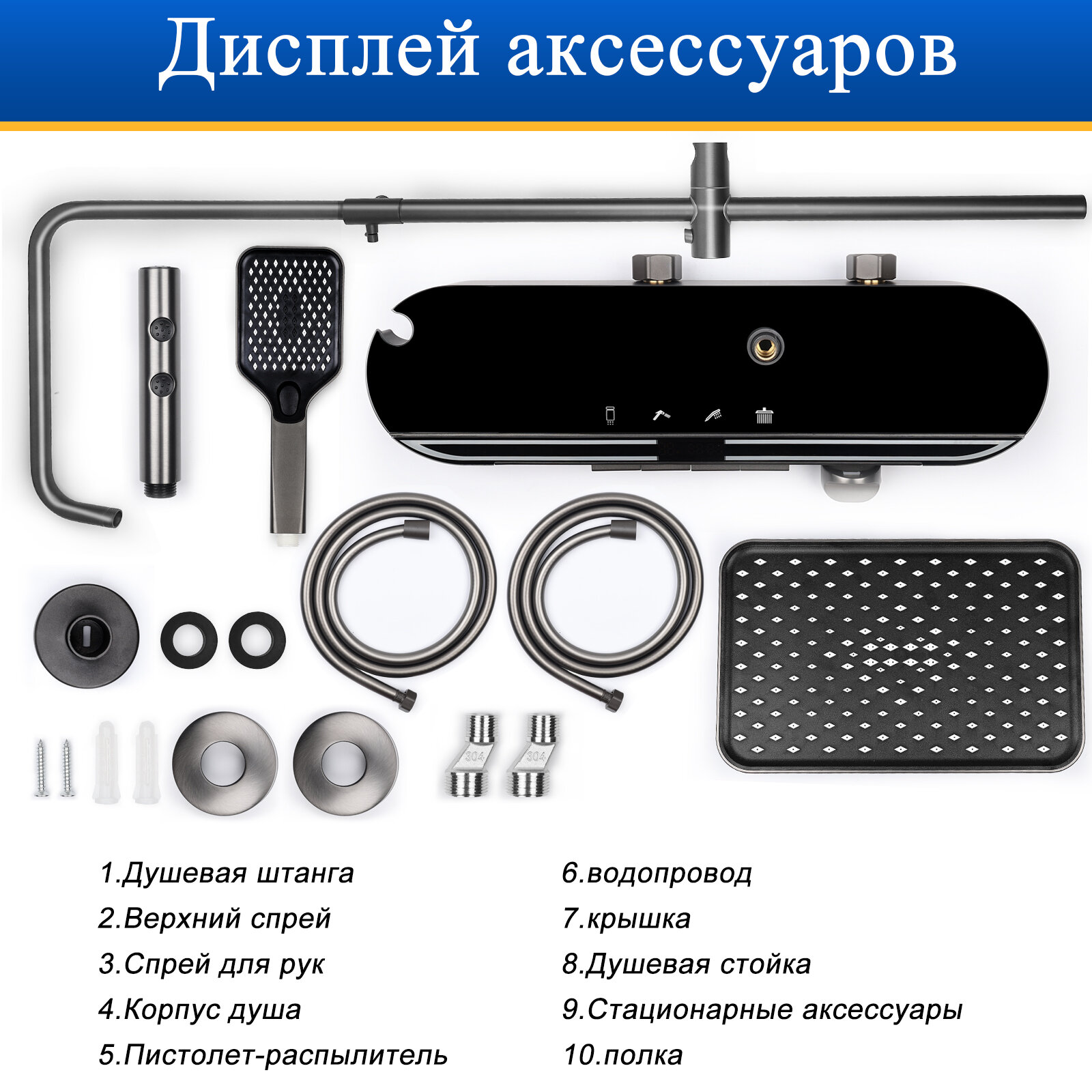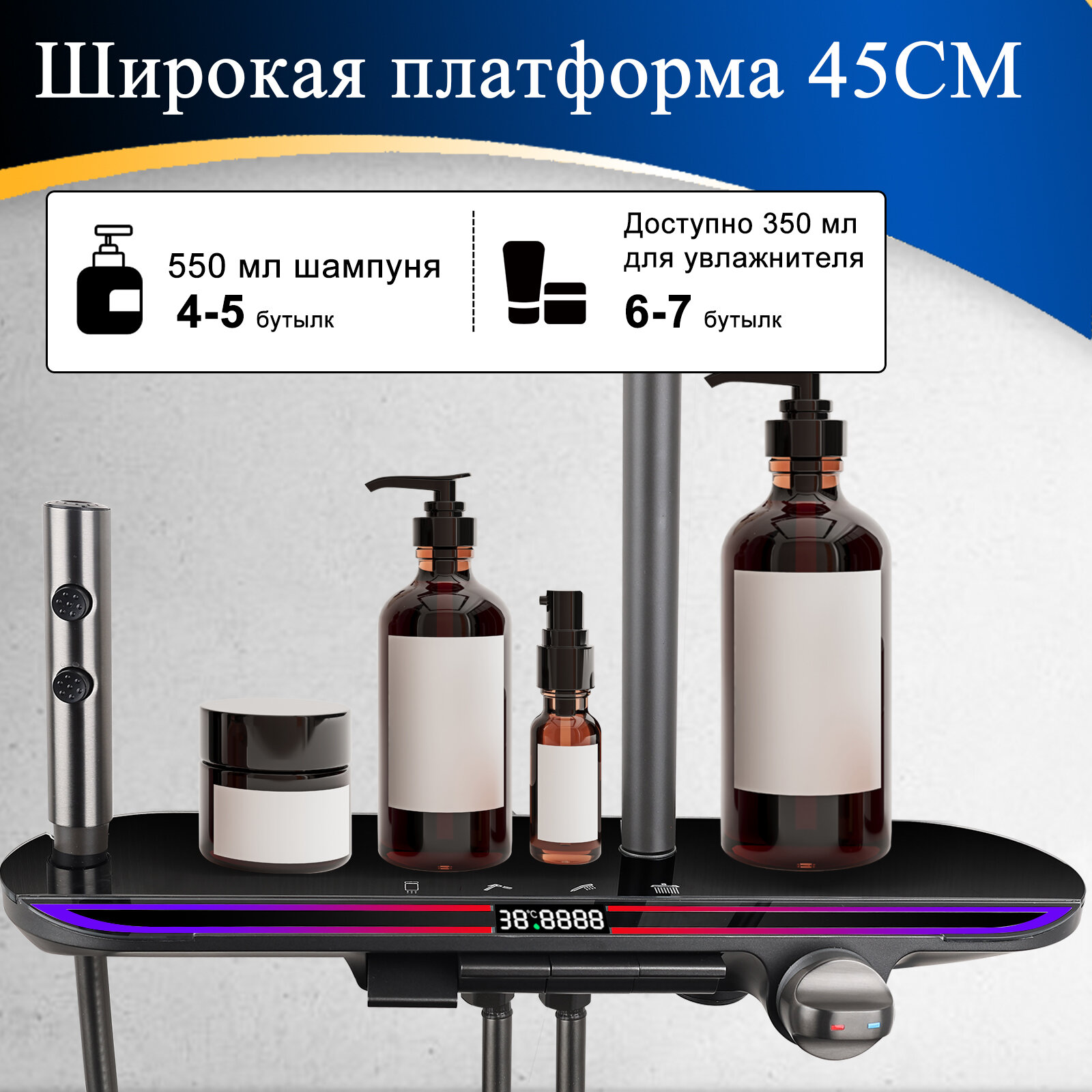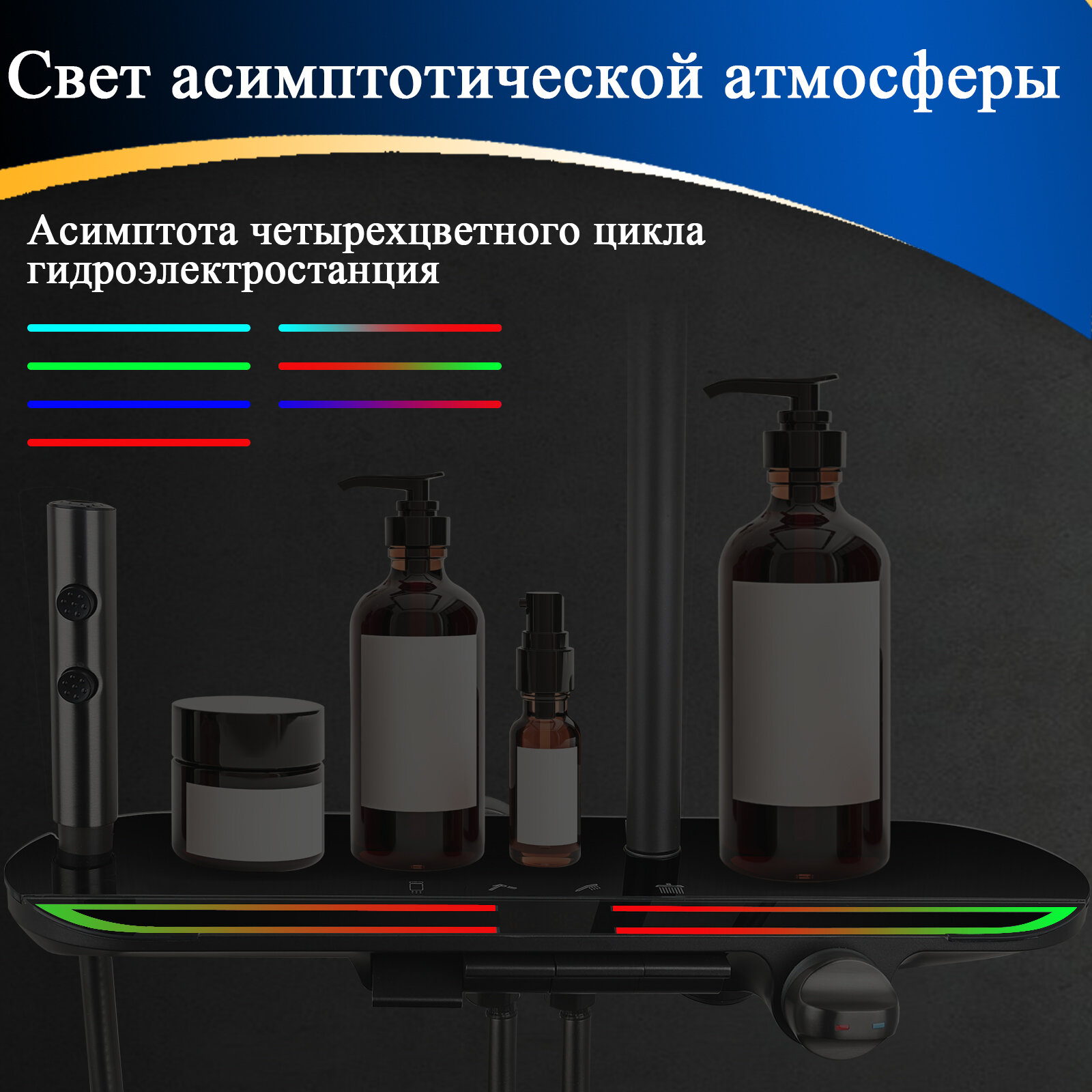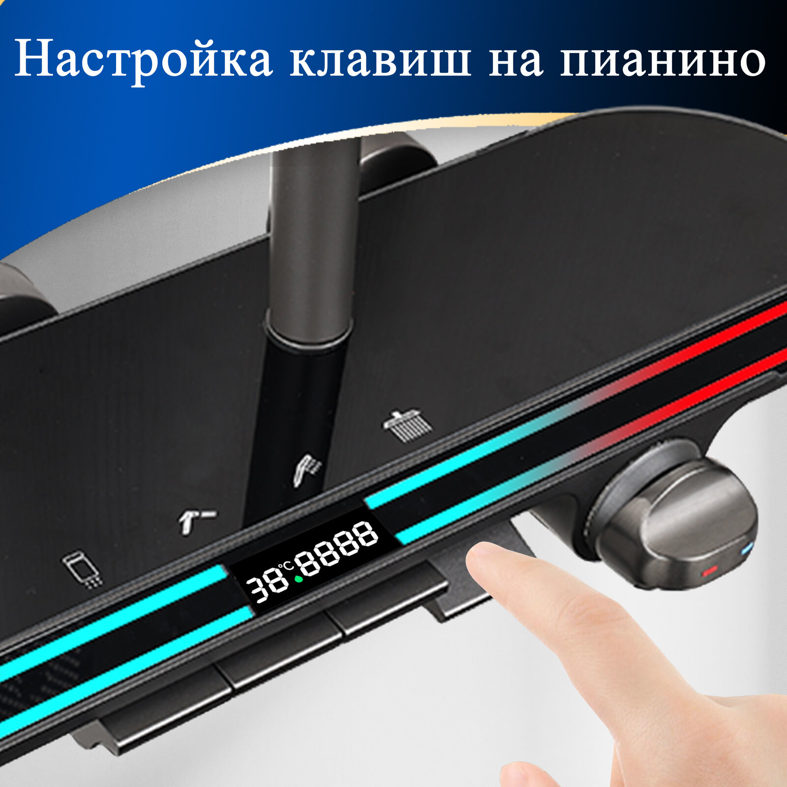 Душевая система с тропическим душем, с подсветкой и индикатором температуры, смеситель для ванны, 4 В 1, черный интересное:
