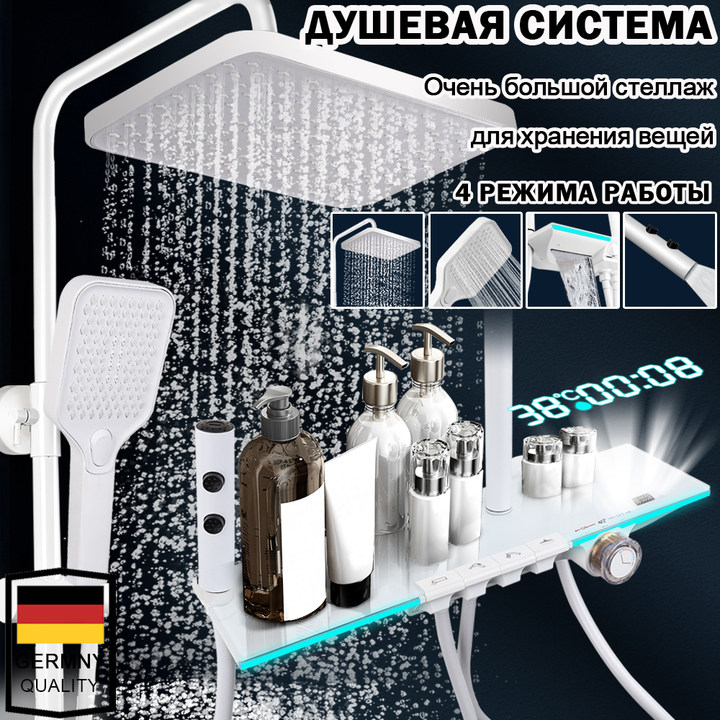 Ниже Вы можете прочитать отзывы на Душевая система, смеситель для ванны с душем, с подсветкой и индикатором температуры,4 В 1, белое, ознакомится с подробными характеристиками, посмотреть интересные обзоры и фотографии на Душевая система, смеситель для ванны с душем, с подсветкой и индикатором температуры,4 В 1, белое.