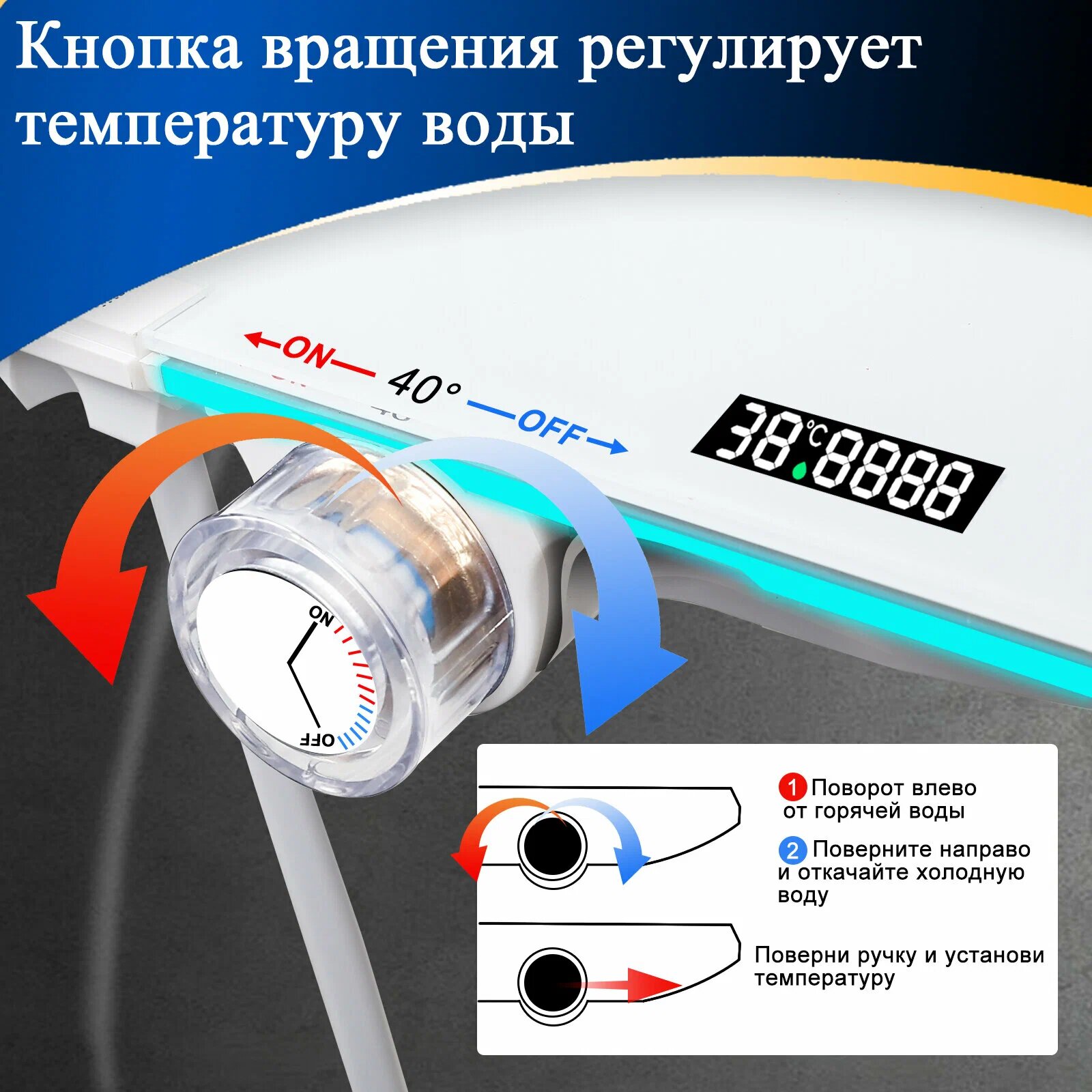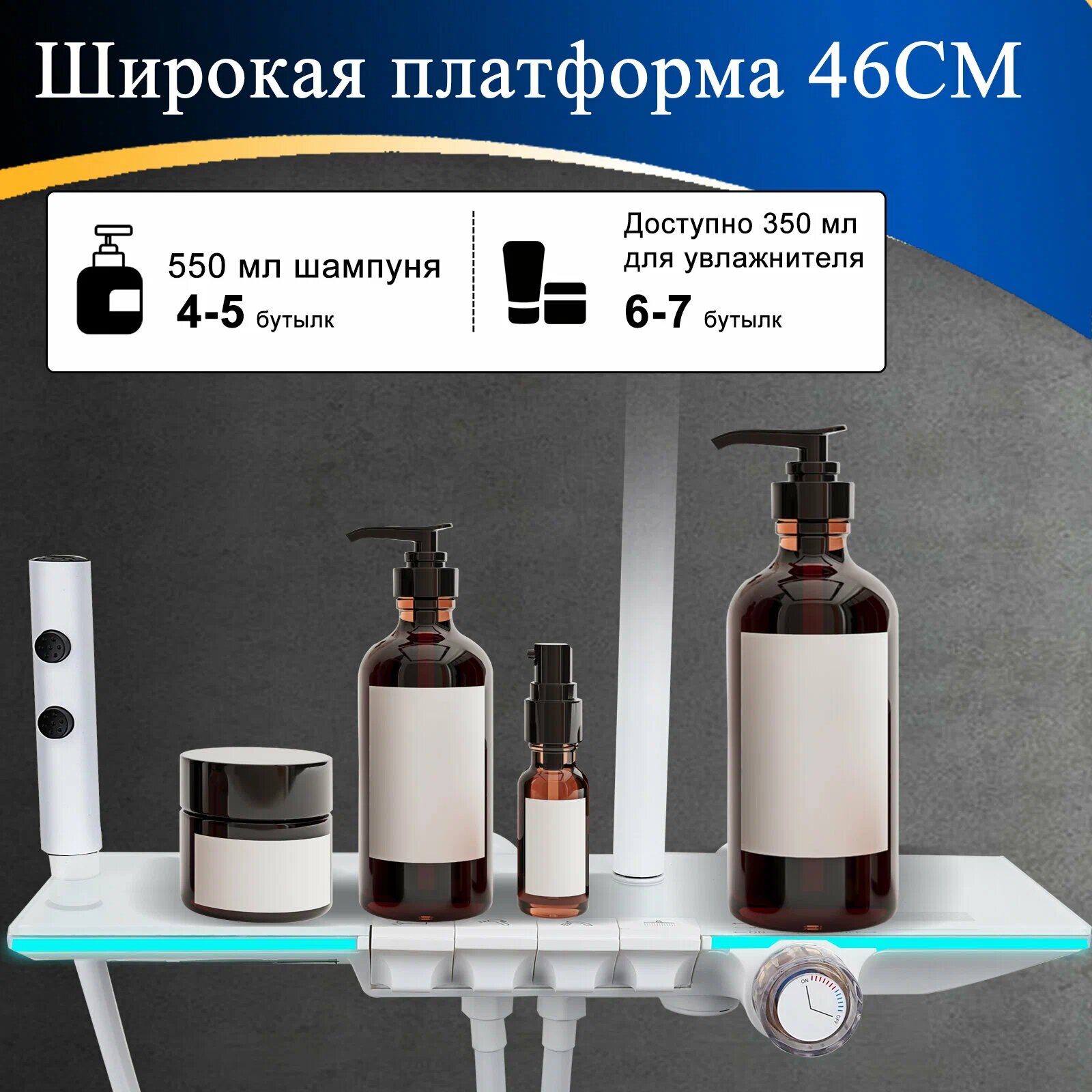 Душевая система, смеситель для ванны с душем, с подсветкой и индикатором температуры,4 В 1, белое интересное: