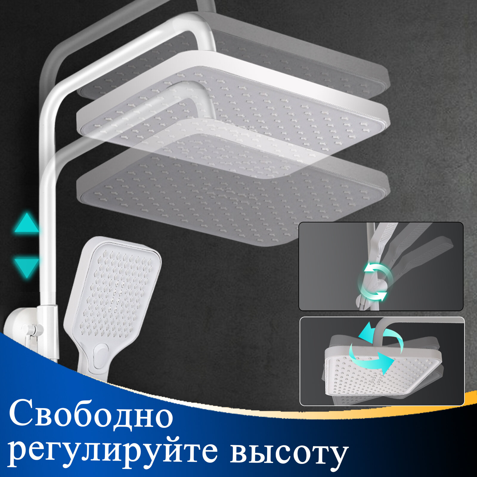 Душевая система с тропическим душем, с подсветкой и индикатором температуры, смеситель для ванны, 4 В 1, Белый интересное:
