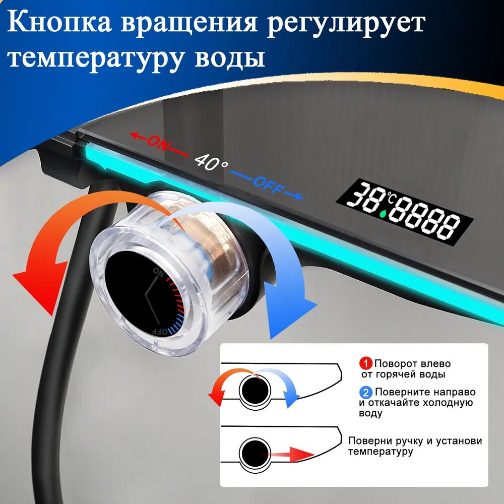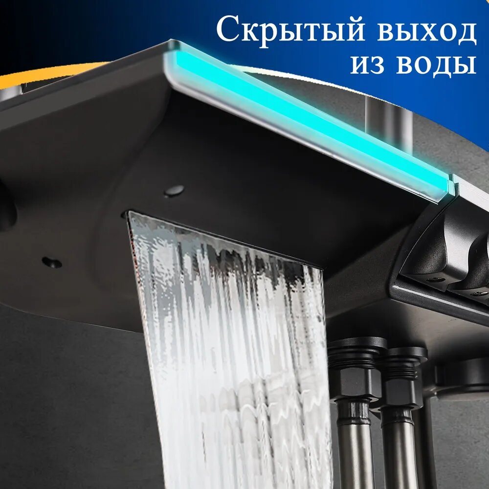 Душевая система с тропическим душем, с подсветкой и индикатором температуры, смеситель для ванны, 4 В 1, черный
