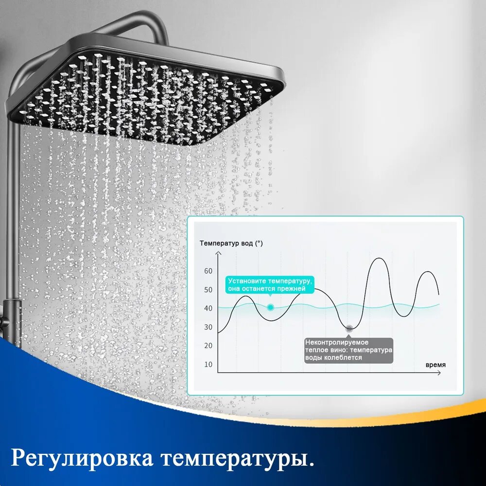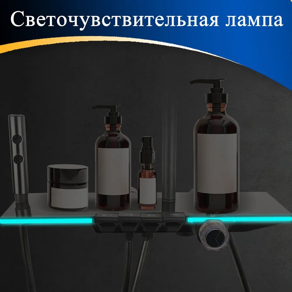 Душевая система, смеситель для ванны с душем, с подсветкой и индикатором температуры,4 В 1, серый интересное: