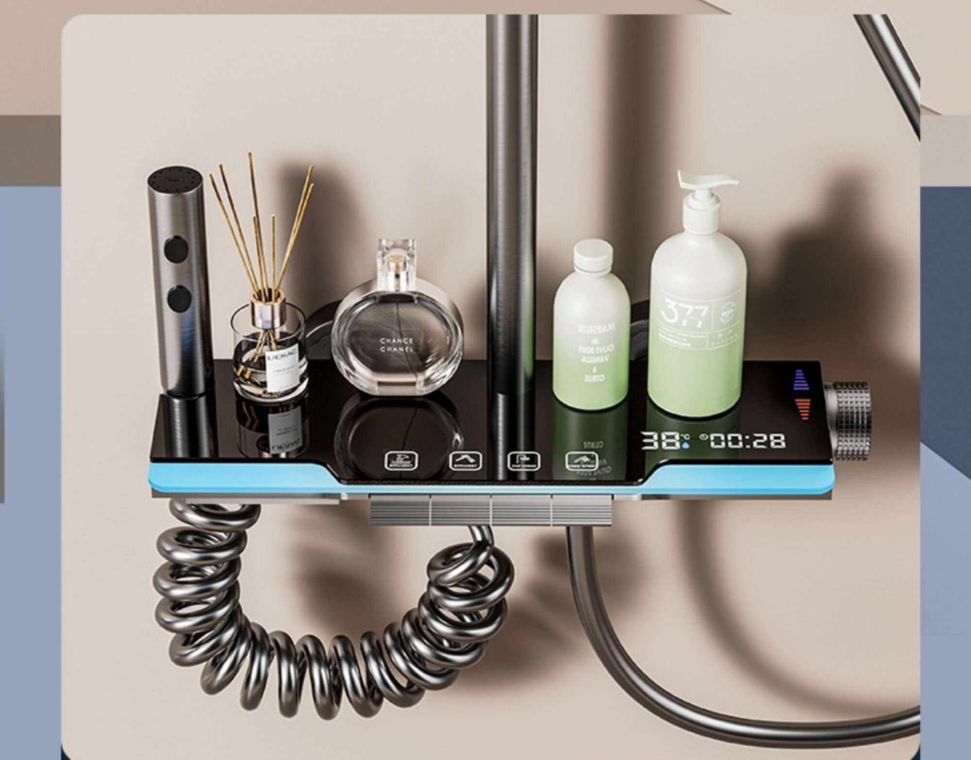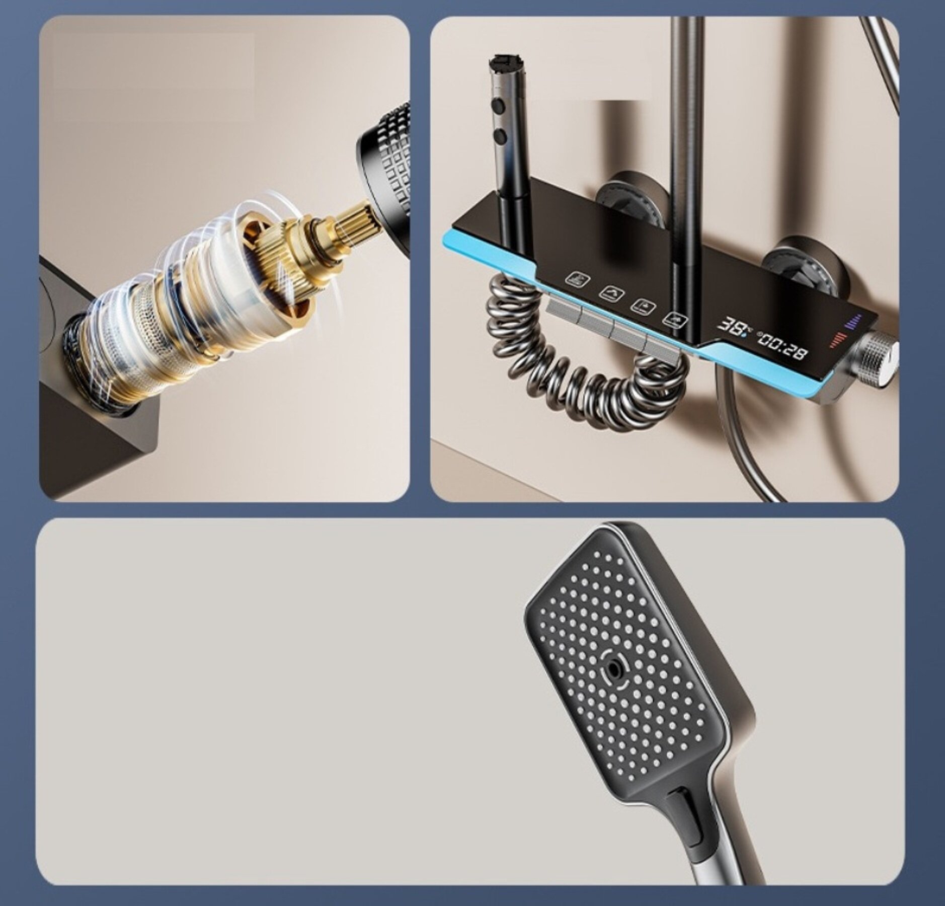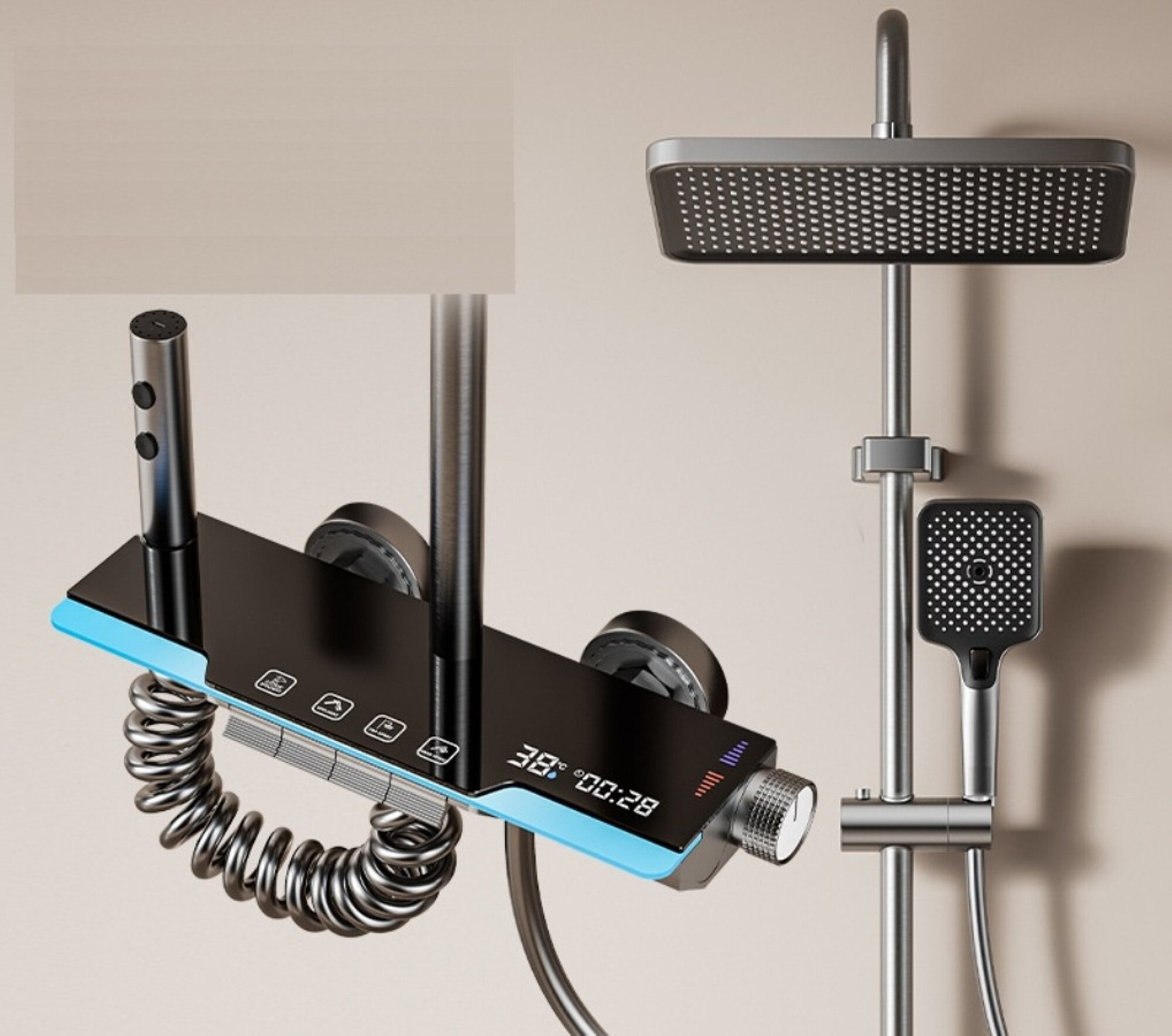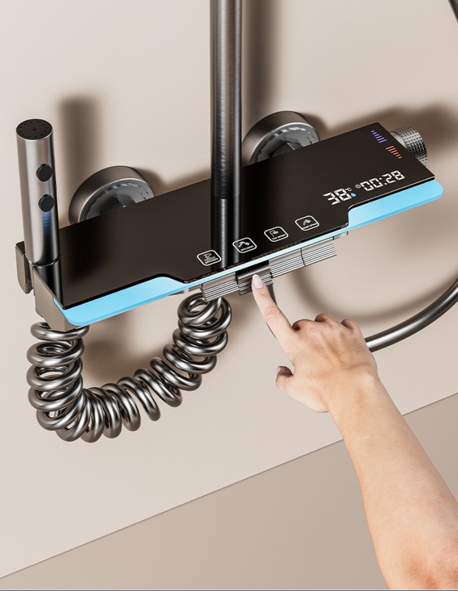 Душевая система, латунь, вертикальный монтаж, термостатическая, 4 режима работы интересное: