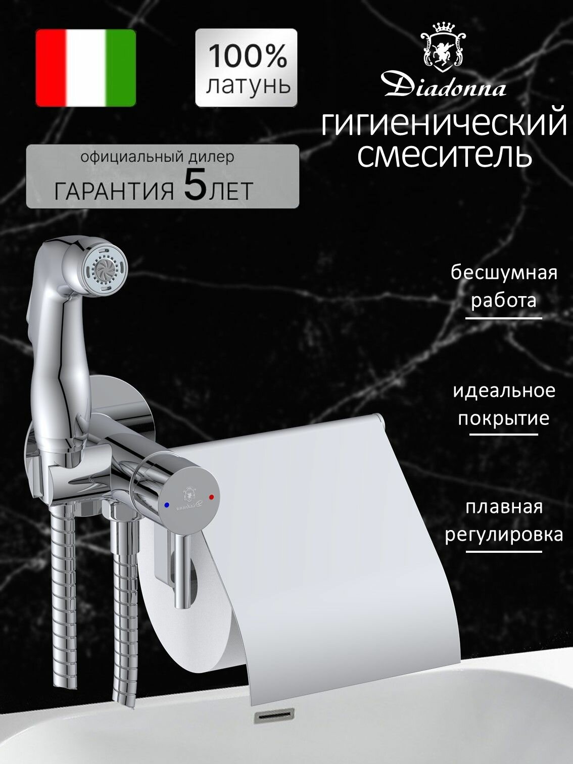 Гигиенический душ Diadonna D47-19018 со смесителем, комплект для биде лейка со шлангом и бумагодержателем, латунь интересное: