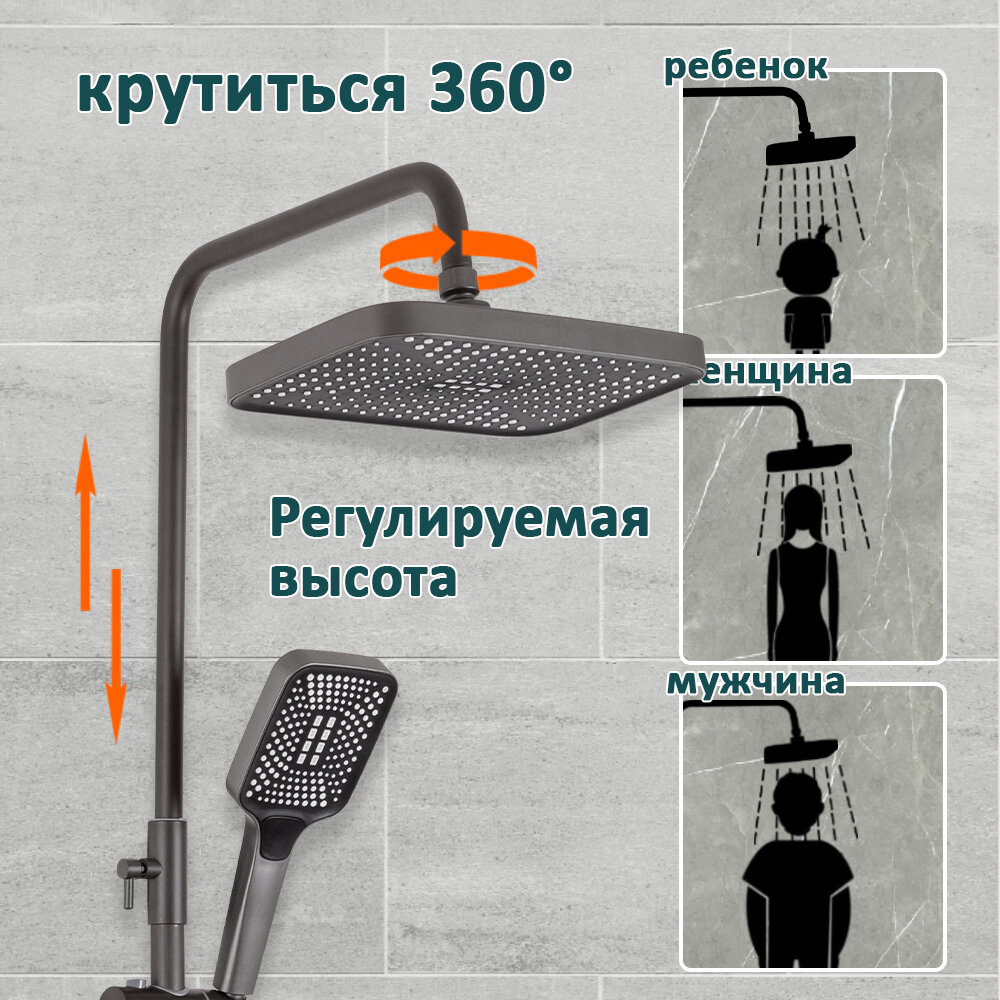 Душевая система, смеситель для ванны с тропическим душем и смесителем, тропический душ, комплект, 4 В 1, серый интересное:
