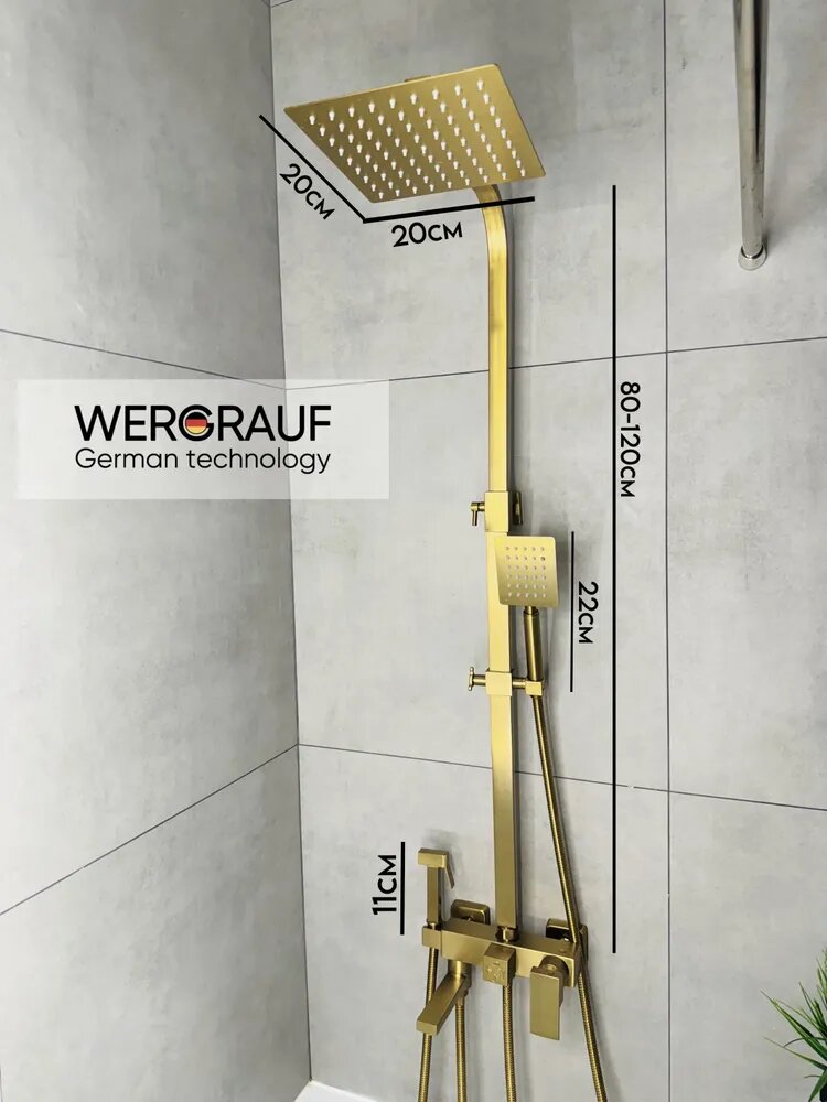 Купить Душевая система Wergrauf 4S-20G с тропическим душем цвет золото
