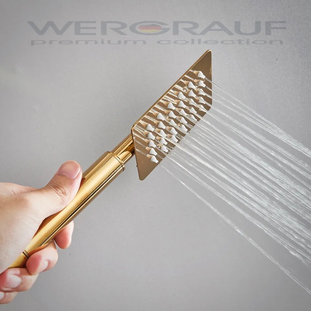 Душевая система Wergrauf 4S-20G с тропическим душем цвет золото