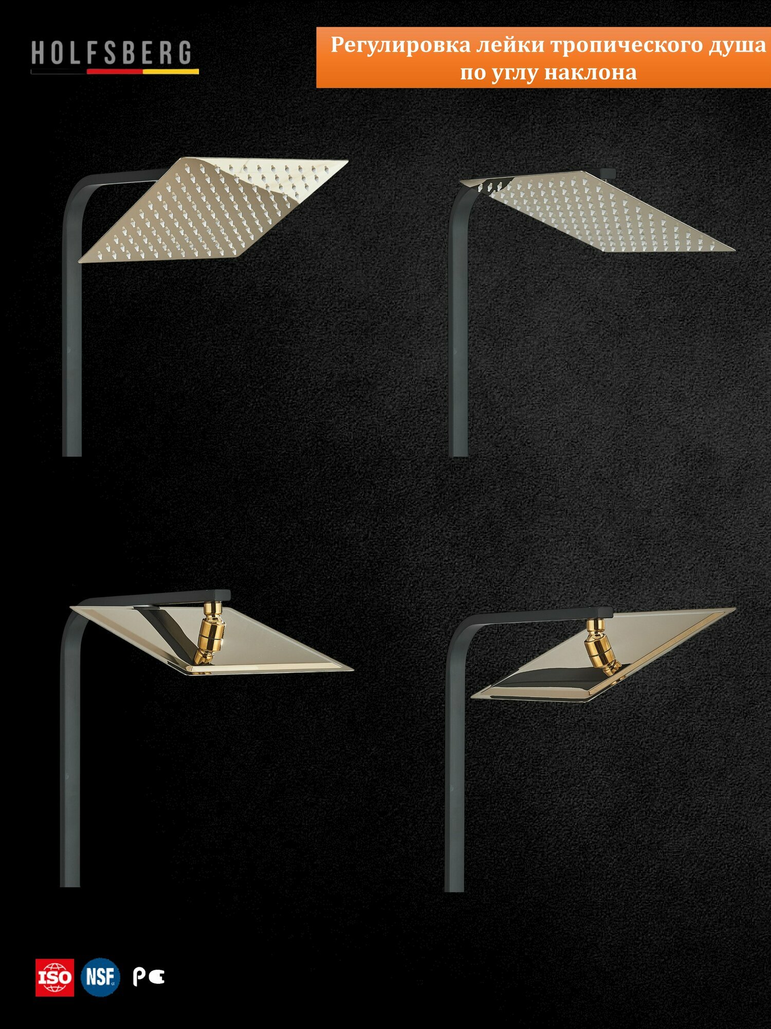 Душевая система с тропическим душем черное золото HOLFSBERG A30 GL - BL-2 4в1 интересное: