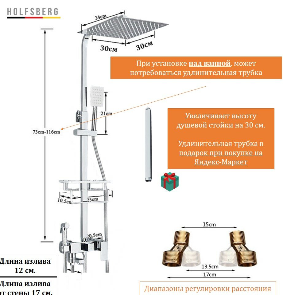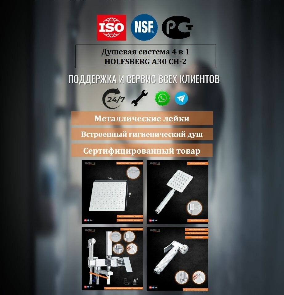 Душевая система с тропическим гигиенически душем и смесителем хром HOLFSBERG A30 CH-2 4 в 1 интересное: