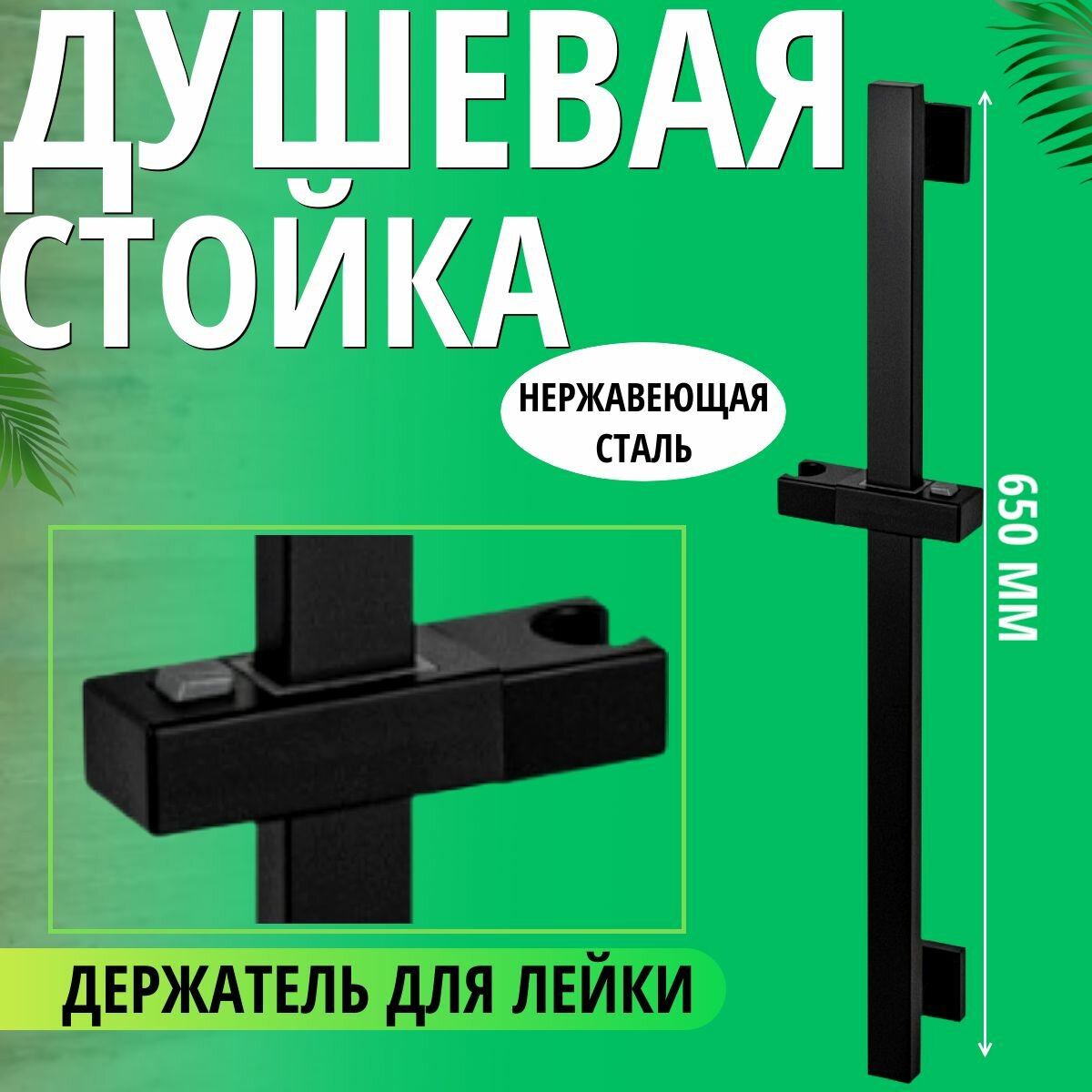 Купить Стойка душевая, без лейки и шланга, из нержавеющей стали марки 304, квадратный профиль, цвет черный