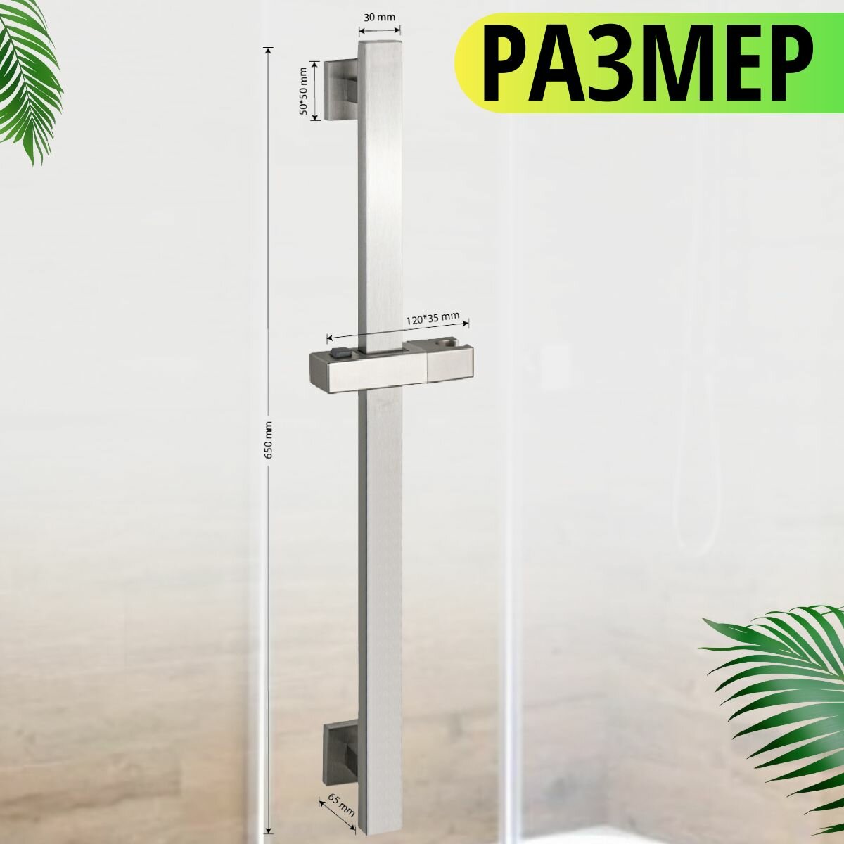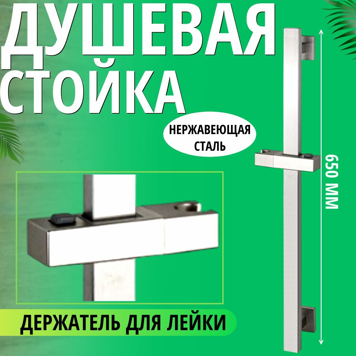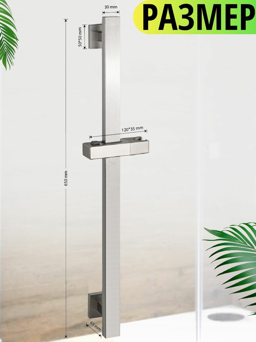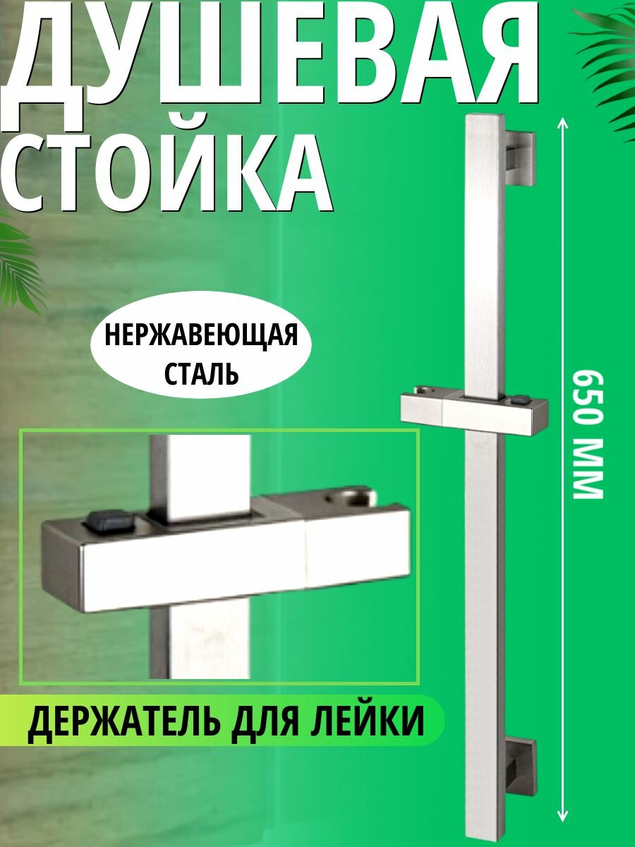 Стойка душевая, без лейки и шланга, из нержавеющей стали марки 304, квадратный профиль, цвет сатин интересное: