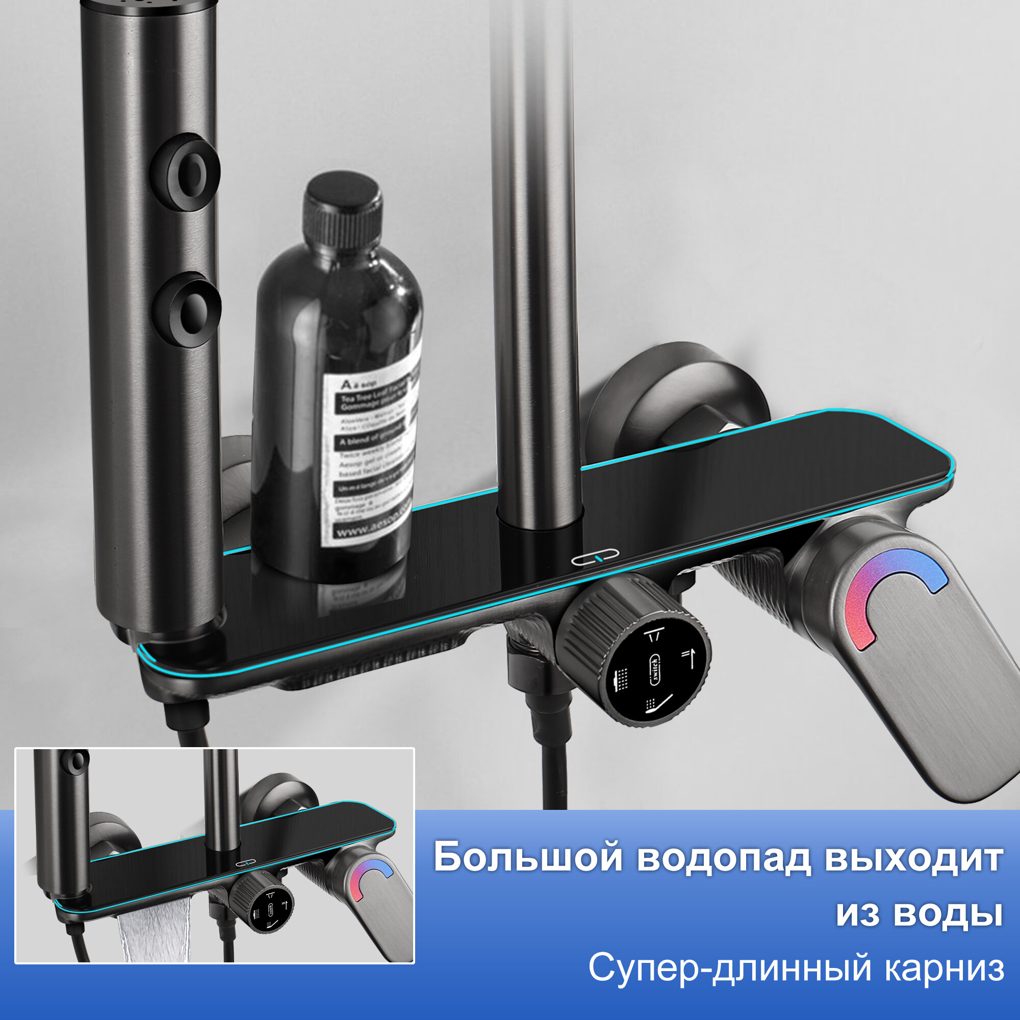 Душевая система с тропическим душем, кран для ванной с душем, набор для ванной комнаты, Роторная модель, серый интересное: