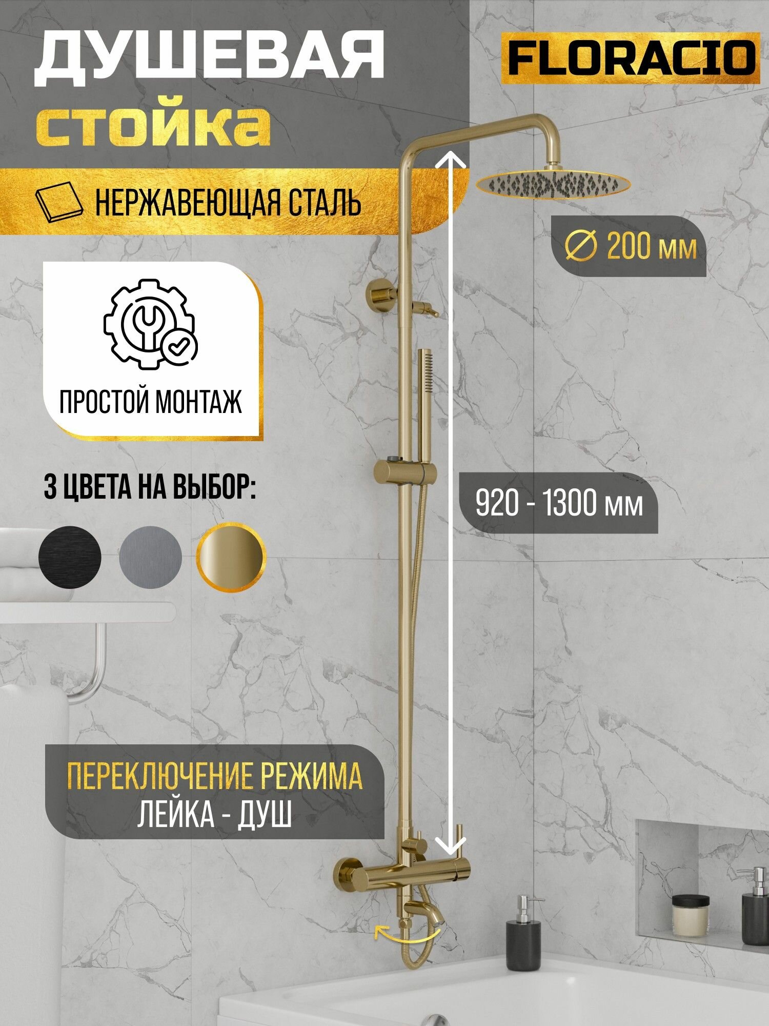 Ниже Вы можете прочитать отзывы на Душевая стойка Floracio Tube F.30111. GD золото, ознакомится с подробными характеристиками, посмотреть интересные обзоры и фотографии на Душевая стойка Floracio Tube F.30111. GD золото.