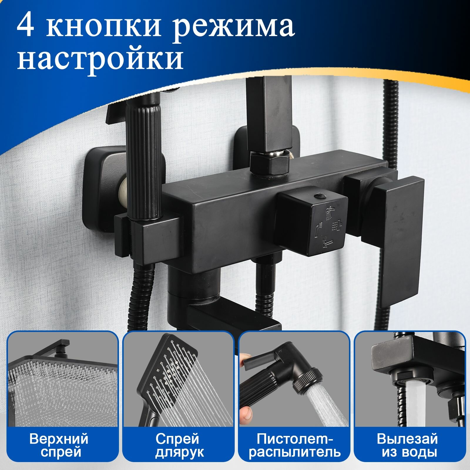 Душевая система, смеситель для ванны с душем, тропический душ, Плюс штанга для душа, черный, 4 В 1