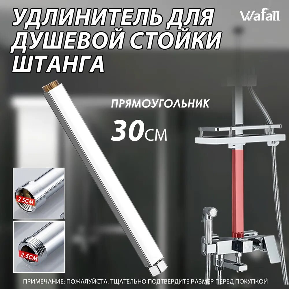 Штанга для душа, удлинитель для душевой, 3/4 держатель для душа, 30 см, Квадрат, серебро интересное: