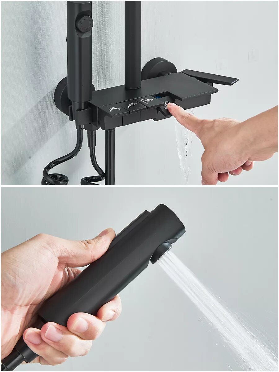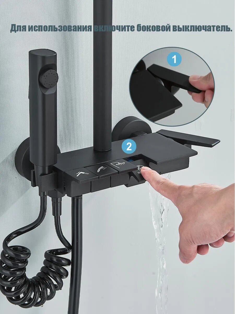 Душевая система с топическим душем и смесителем с тропическим дождем и аэратором, с гигиеническим душем