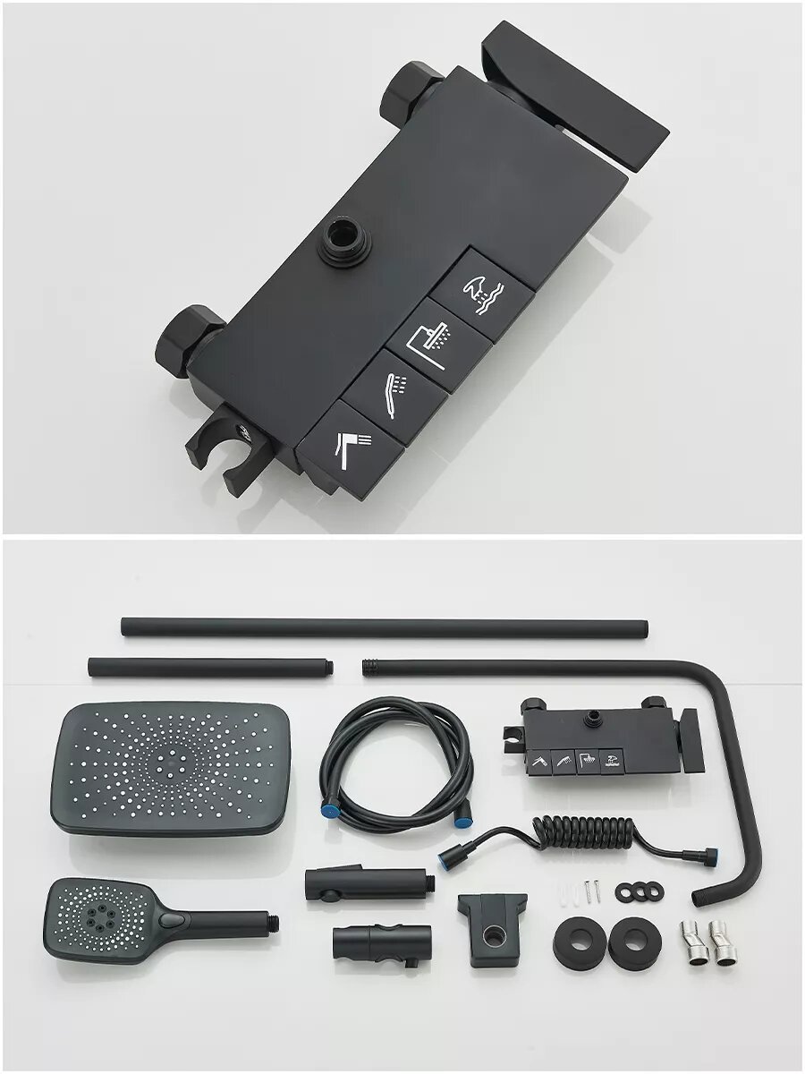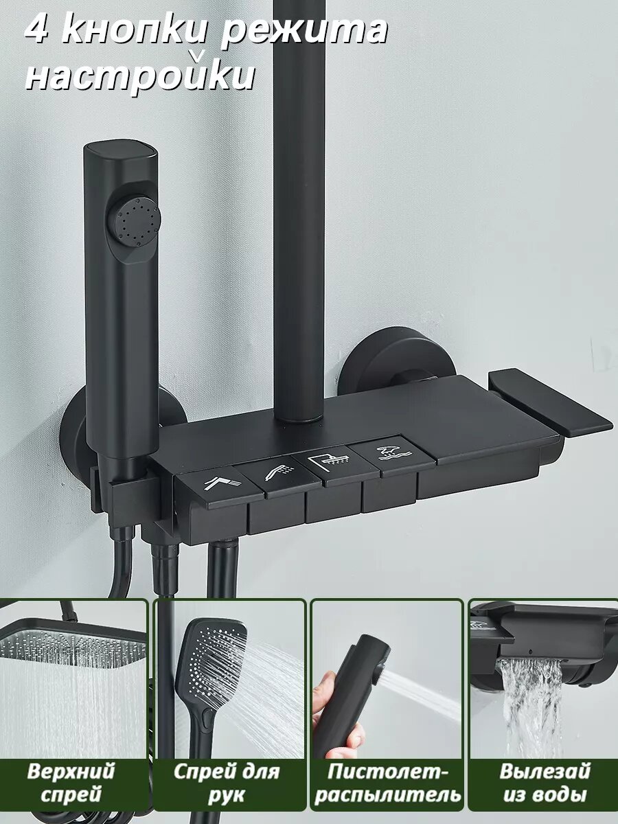 Душевая система с топическим душем и смесителем, с тропическим дождем и аэратором, с гигиеническим душем