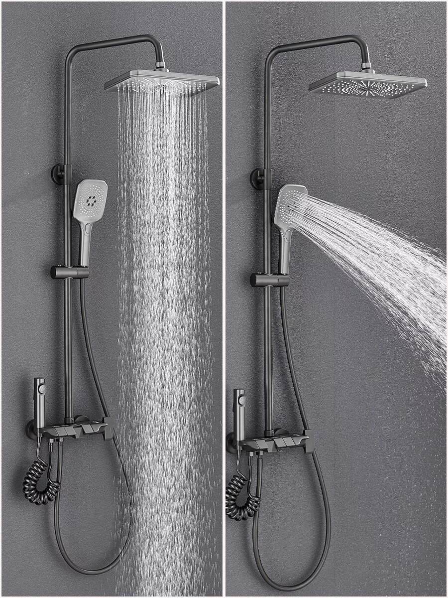 Душевая система с топическим душем и смесителем, с тропическим дождем и аэратором, с гигиеническим душем
