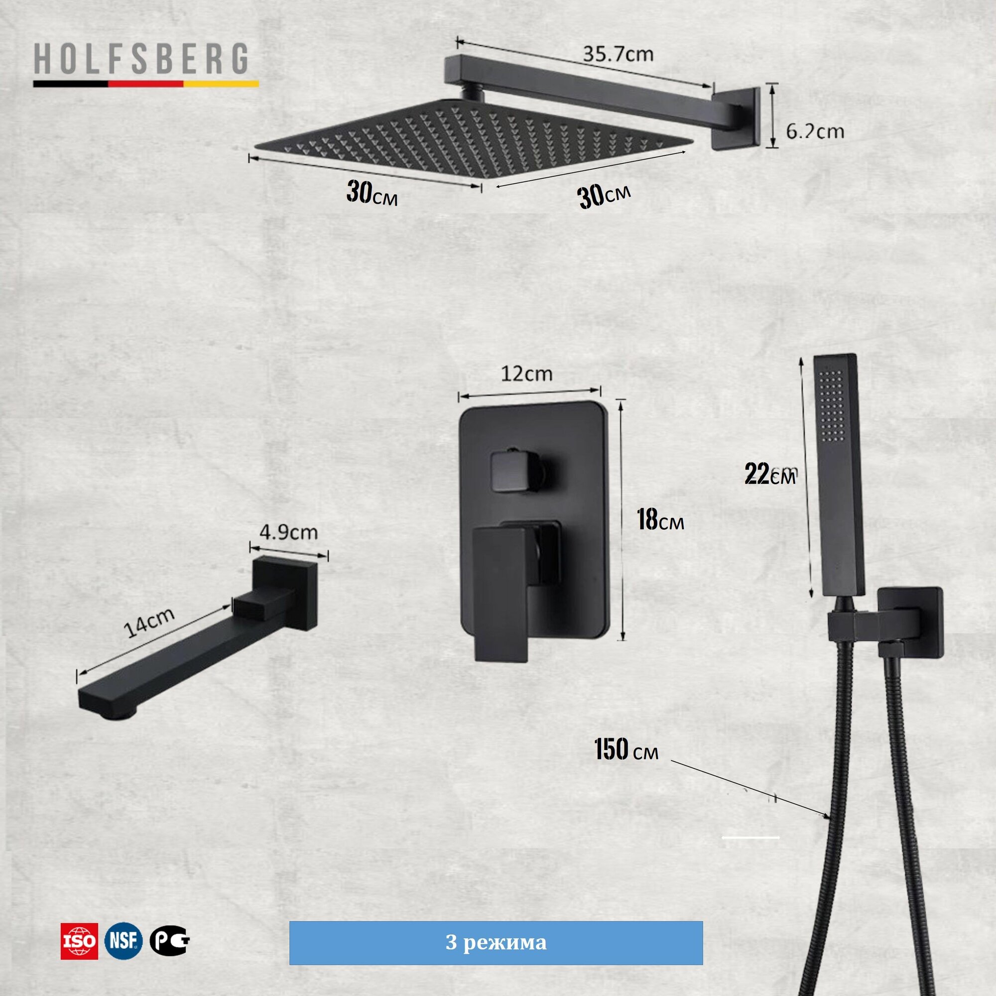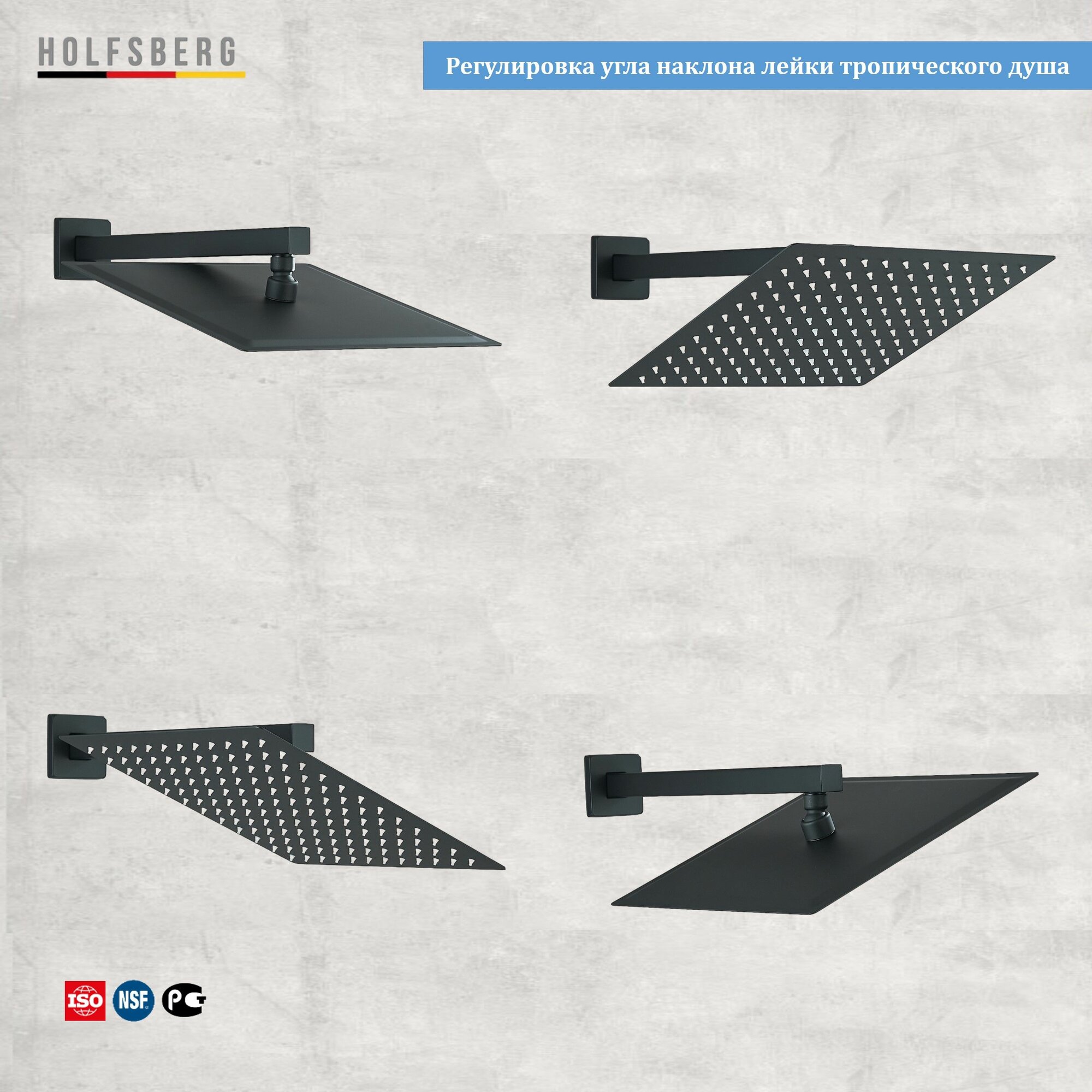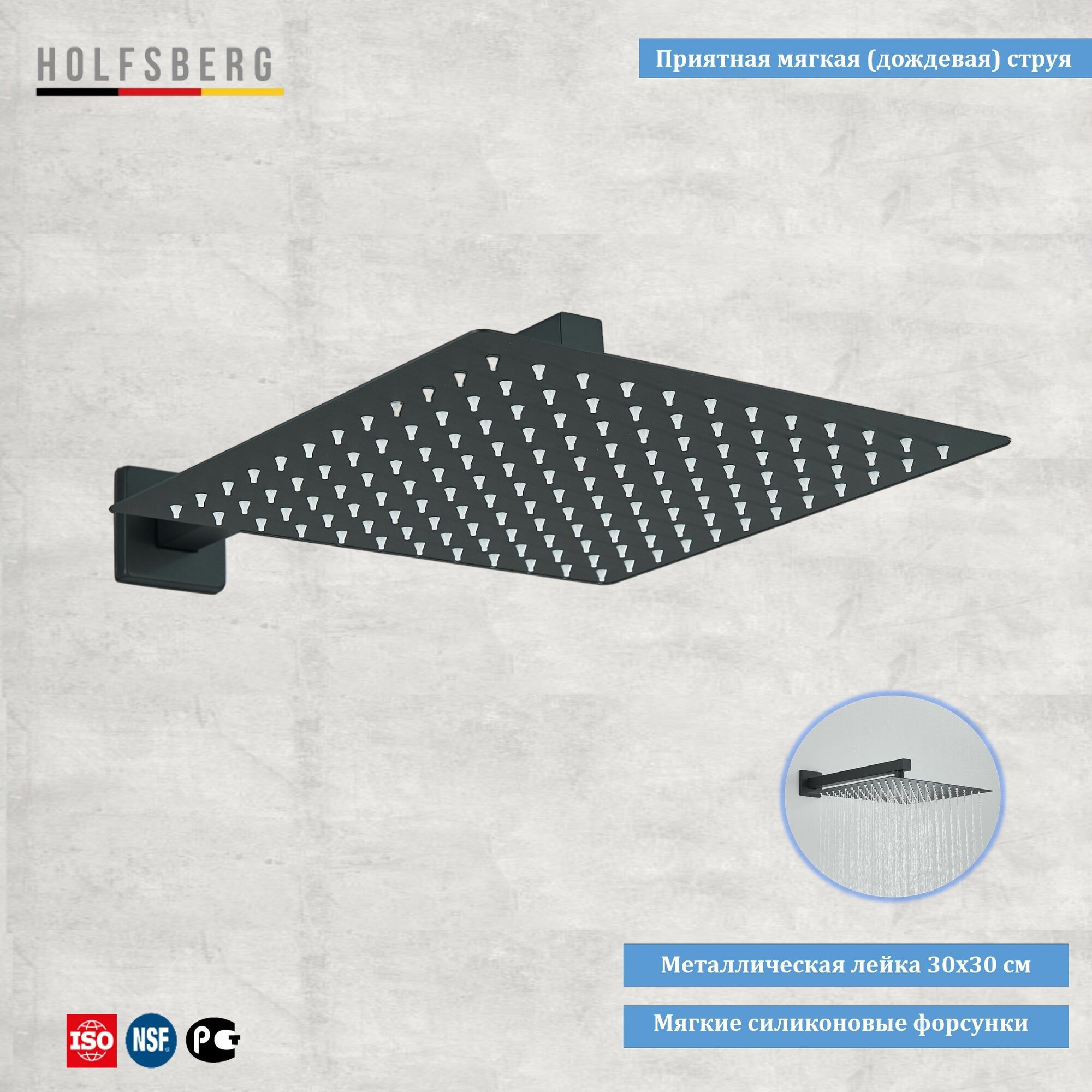 Душевая система скрытого монтажа с тропическим душем черная 30х30 см HOLFSBERG S30 3v1 BL-1 интересное:
