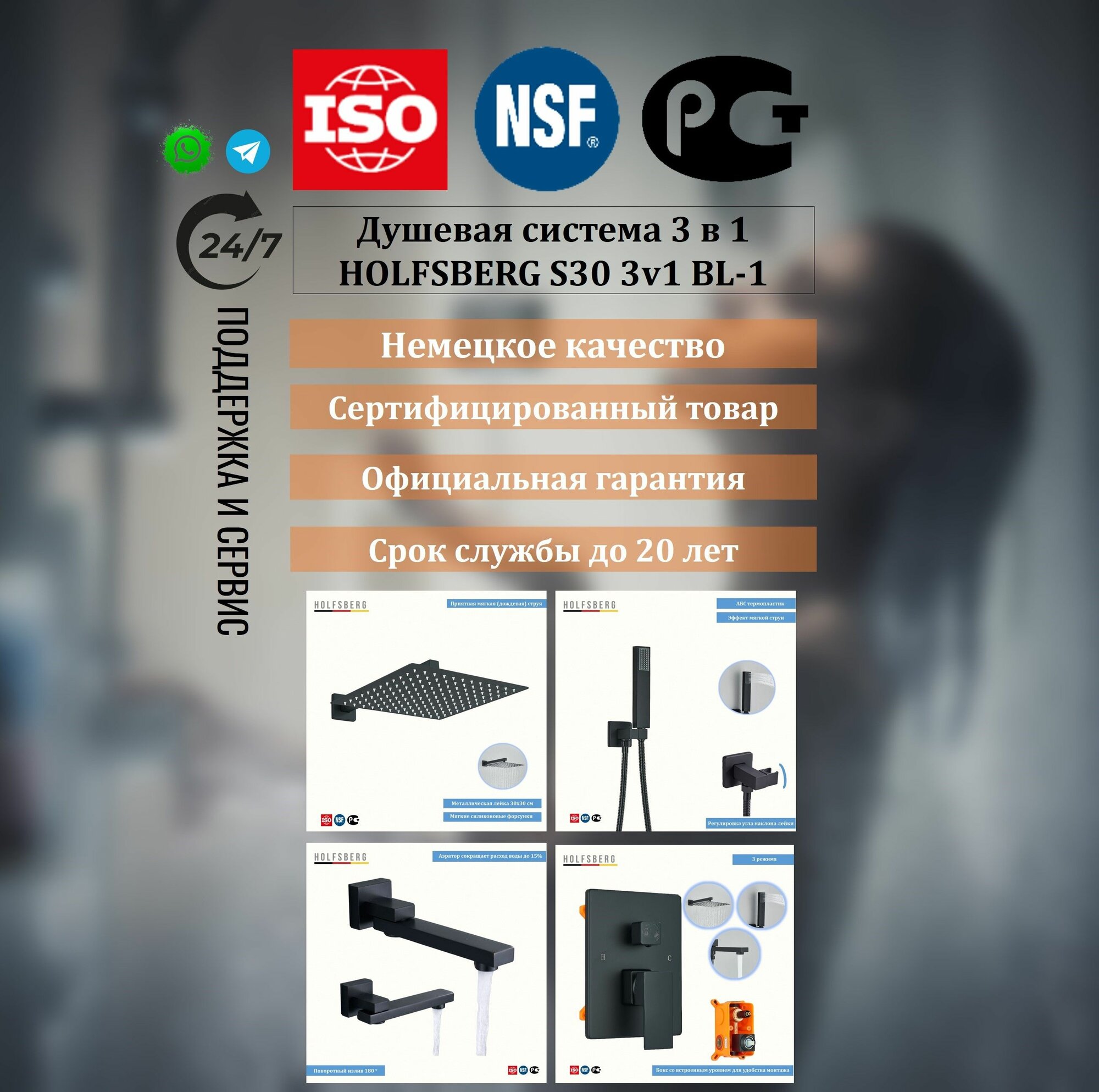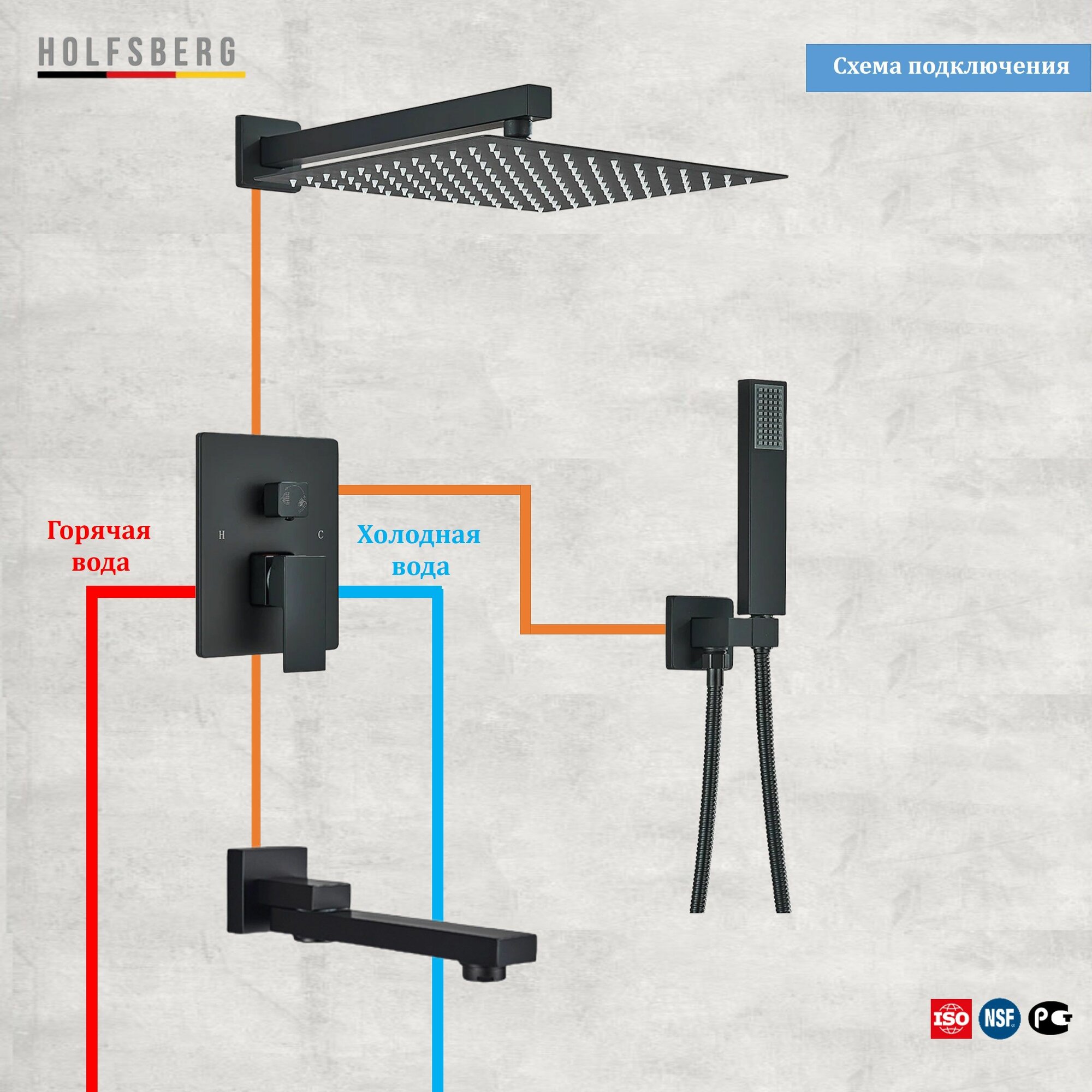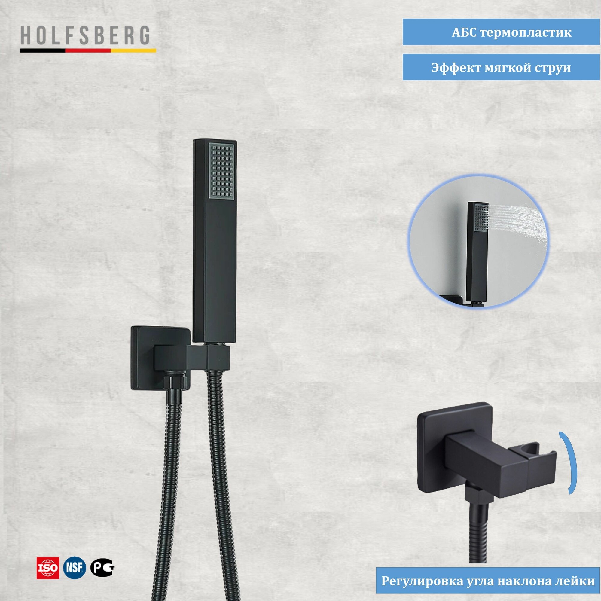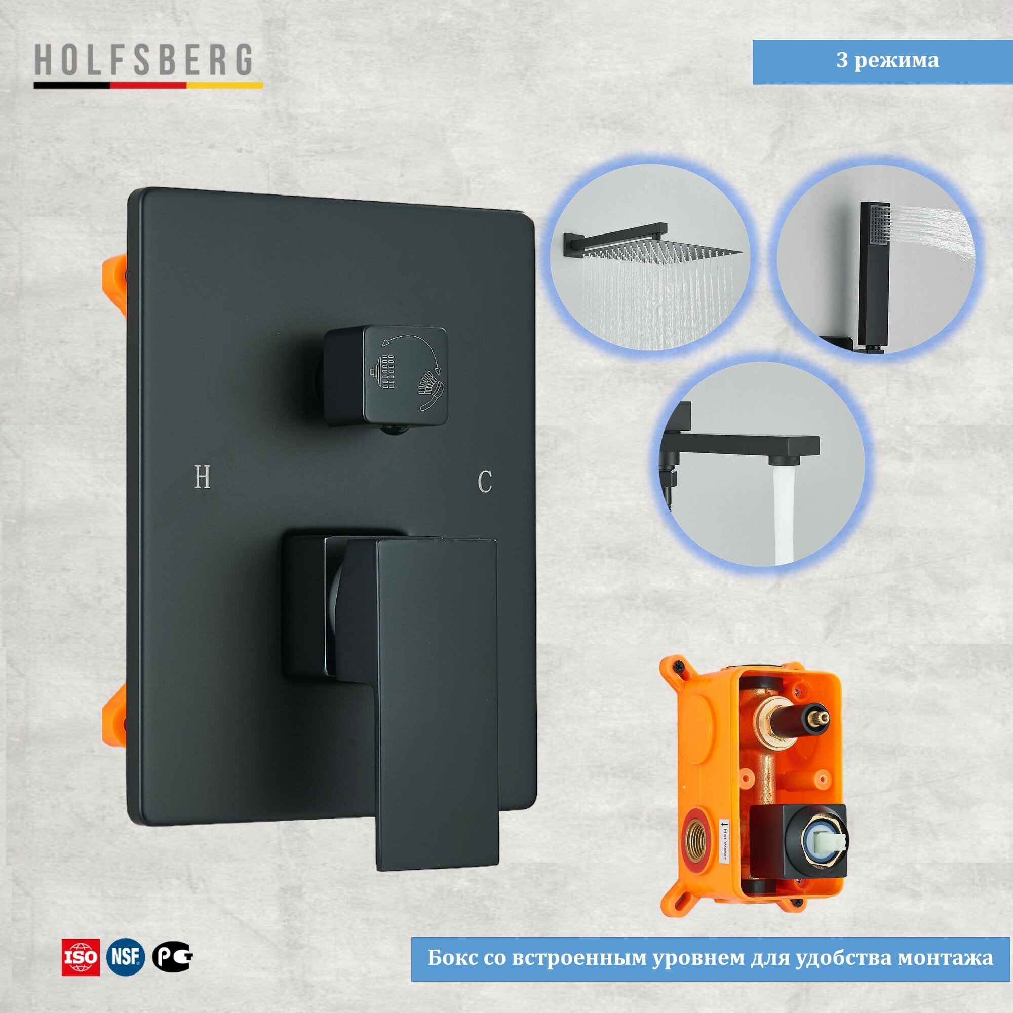 Душевая система скрытого монтажа с тропическим душем черная 30х30 см HOLFSBERG S30 3v1 BL-1 интересное: