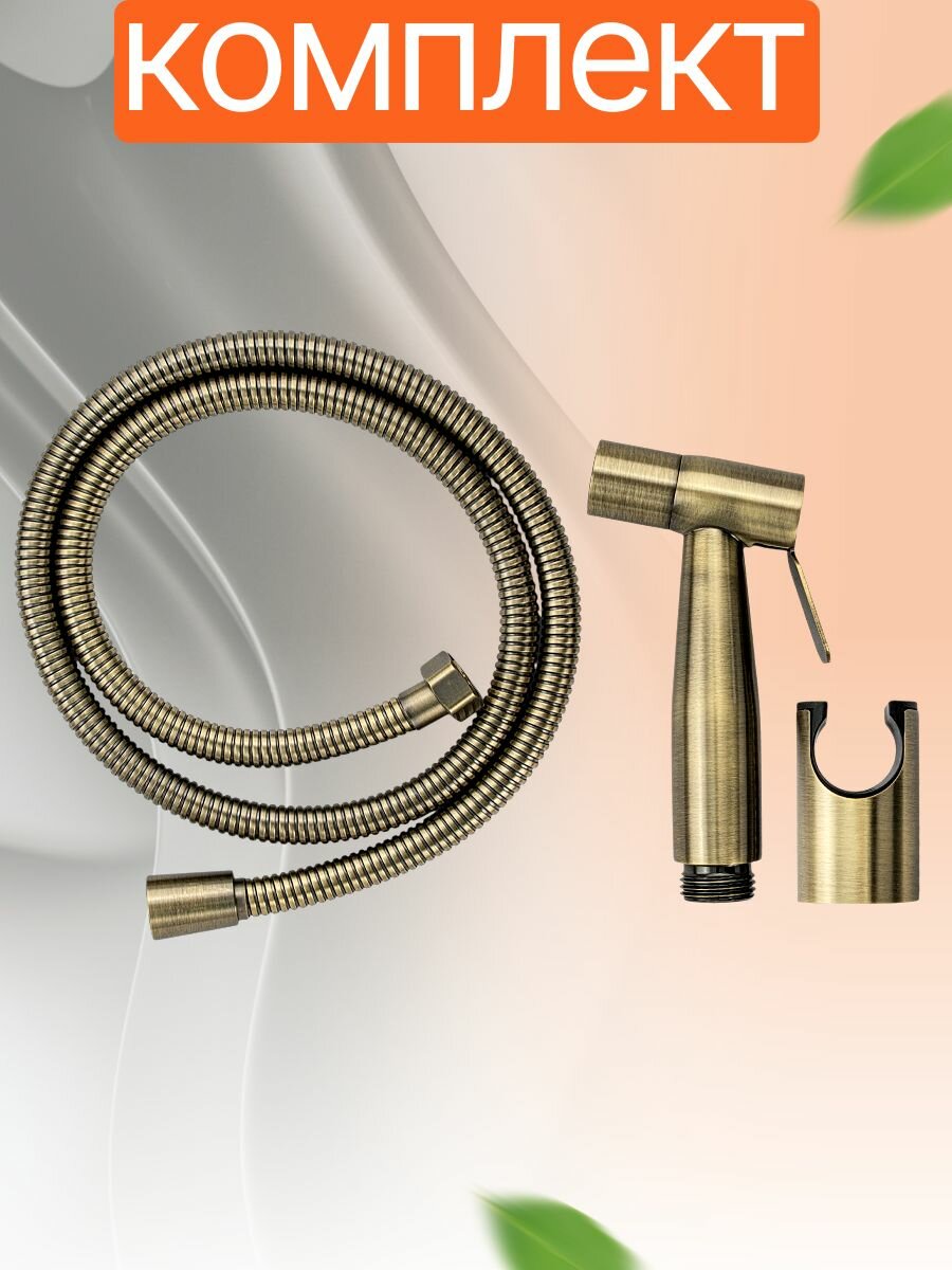 Набор для биде - гигиеническая лейка, шланг, кронштейн, из нержавеющей стали, в блистере. Цвет бронза. интересное: