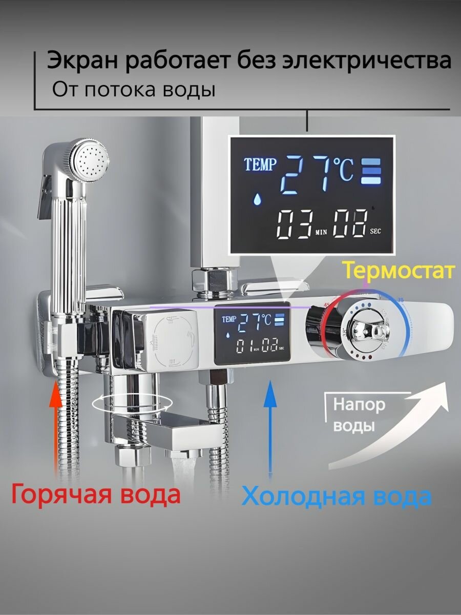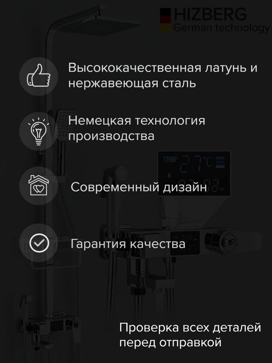 Душевая система Wergrauf 4HP-20T с тропическим душем и термостатом цвет хром интересное: