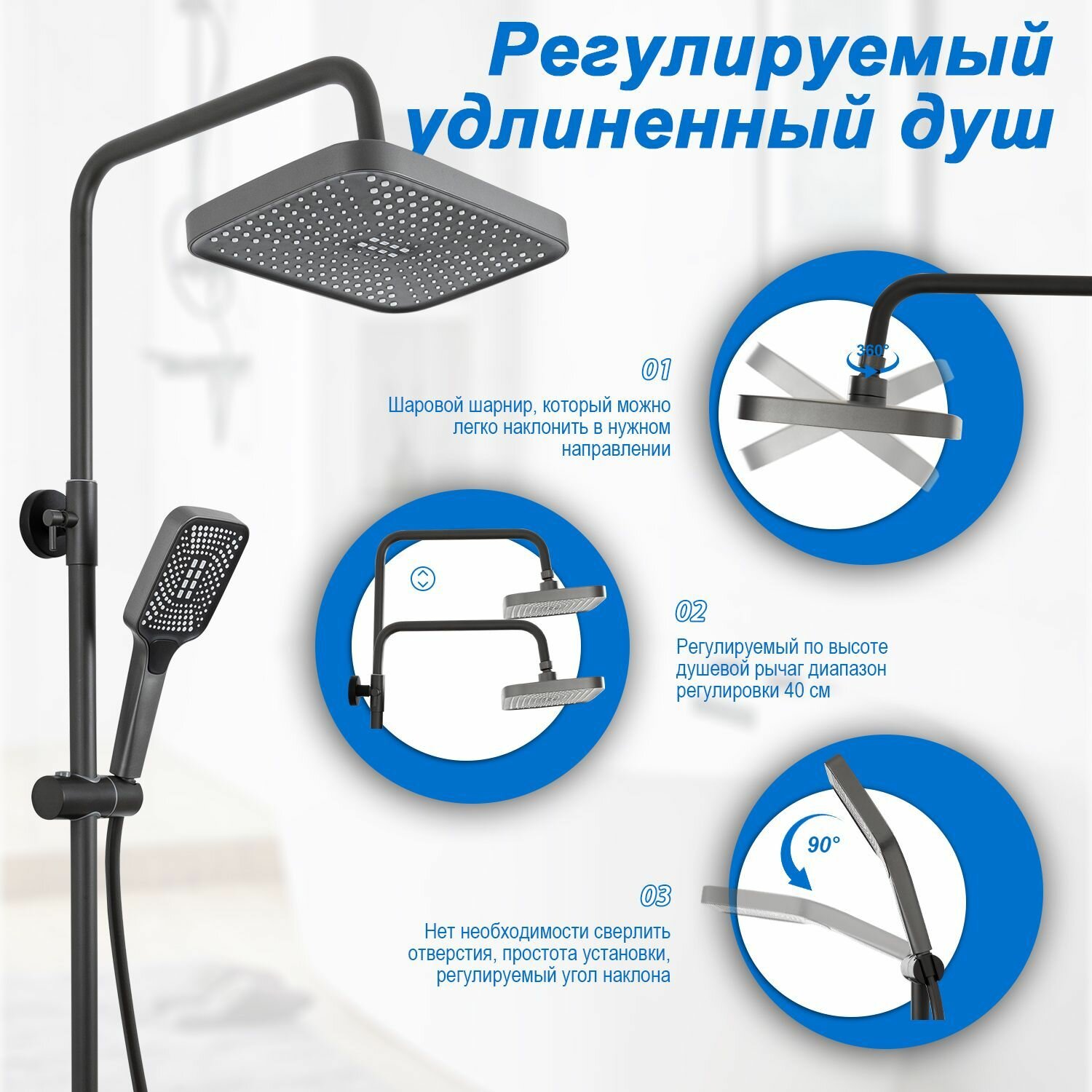 Душевая система, душевой комплект, тропический душ, смеситель для ванной душа, серый интересное: