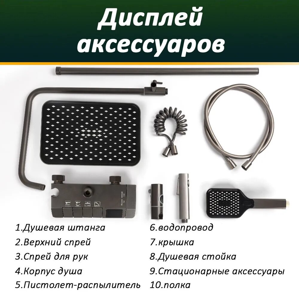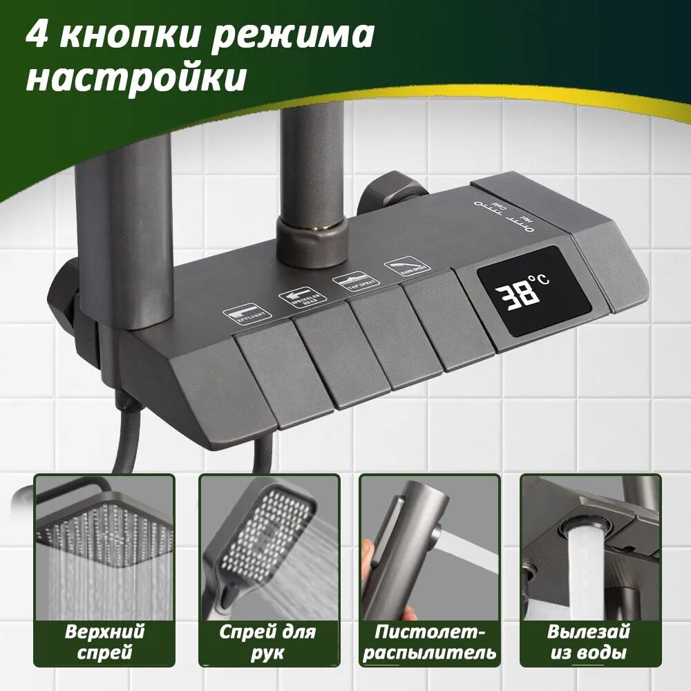 Душевая система с тропическим душем, тропический душ комплект, смеситель для ванны, Цифровой дисплей, 4 В 1, серый интересное: