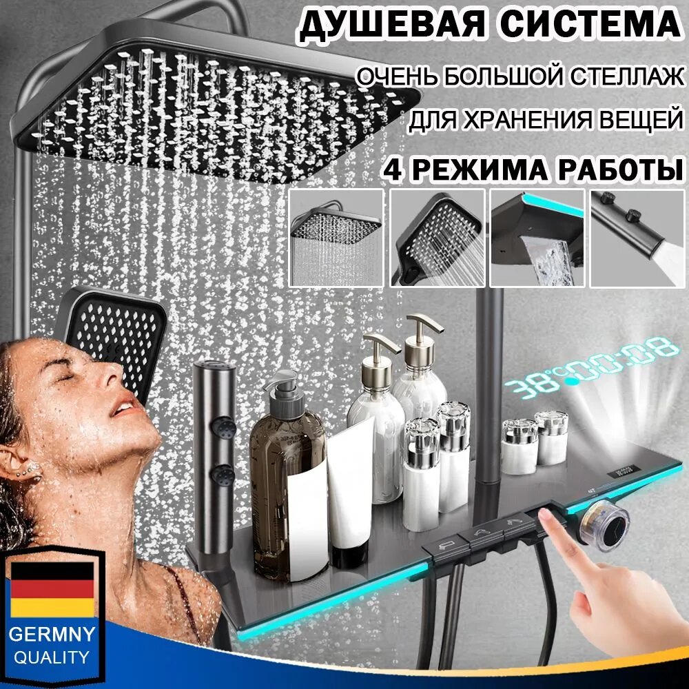 Душевая система, смеситель для ванны с душем, с подсветкой и индикатором температуры,4 В 1, набор для ванной комнаты, серый интересное: