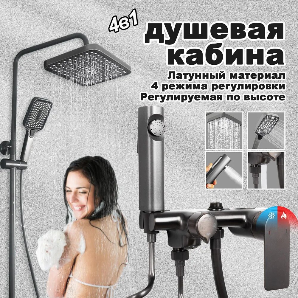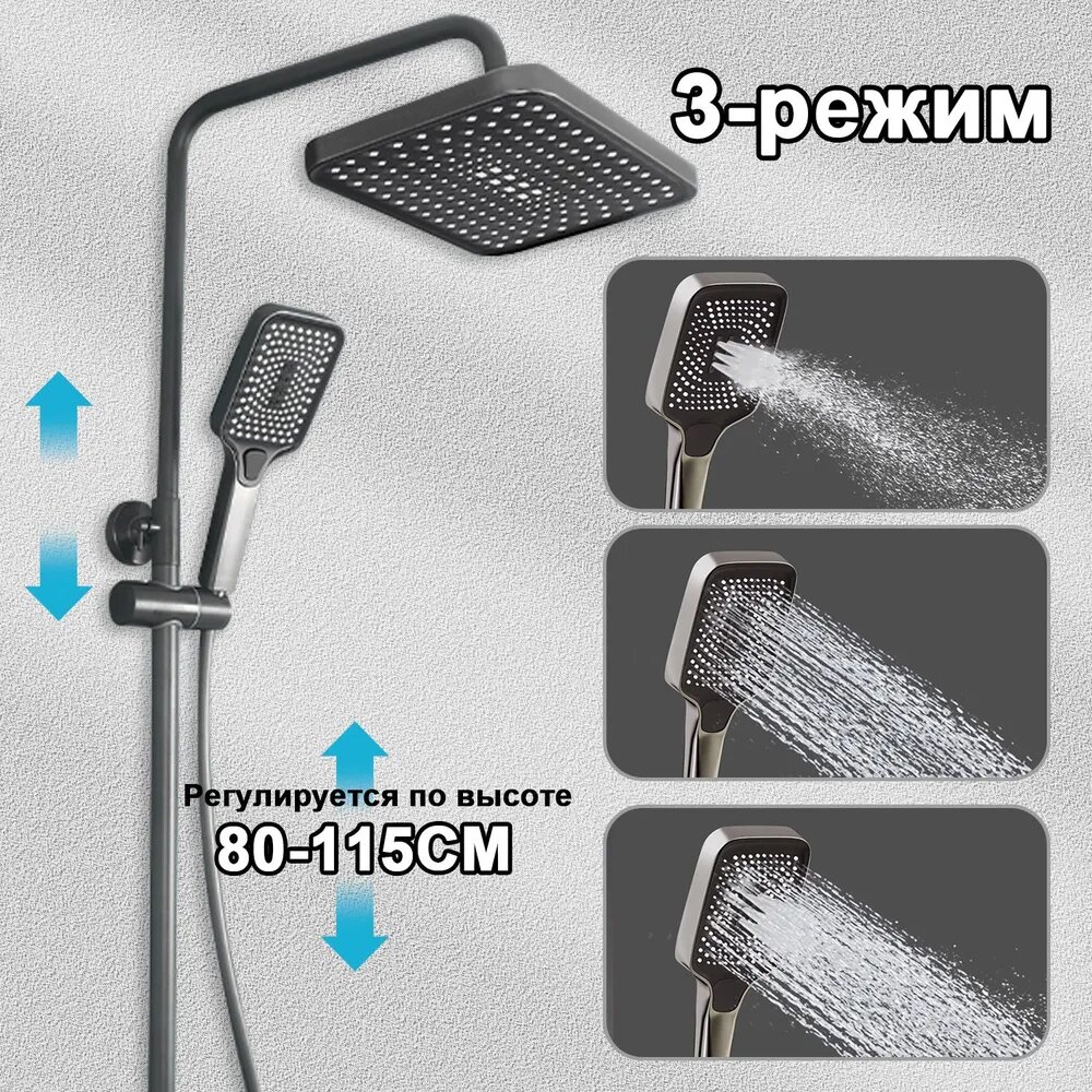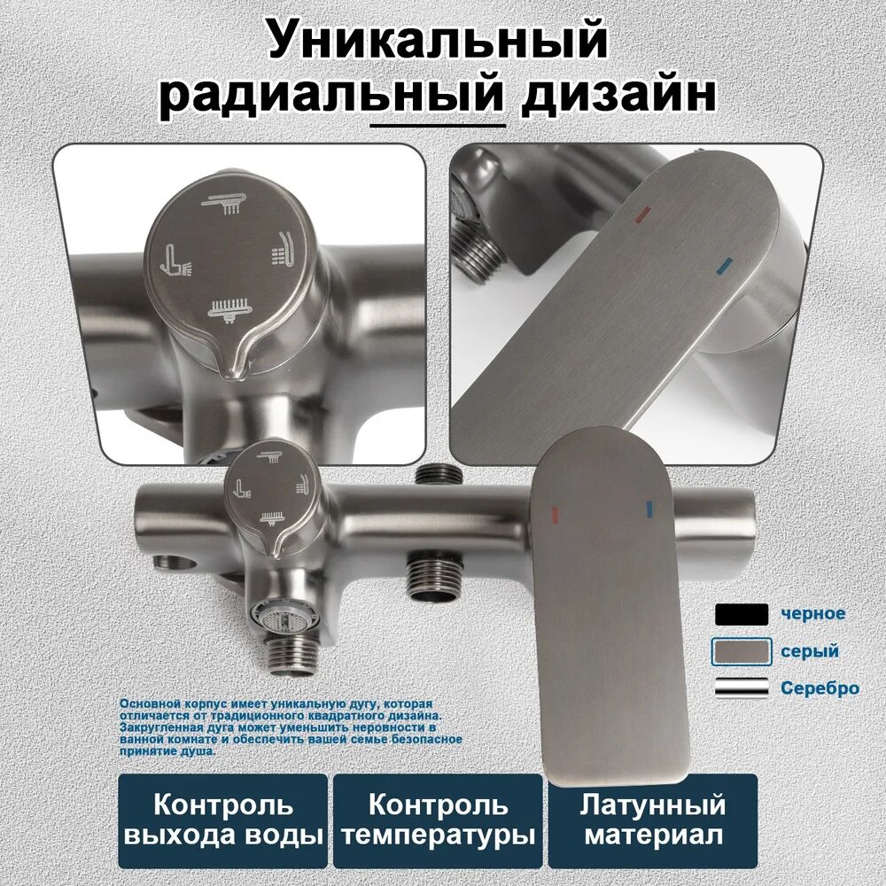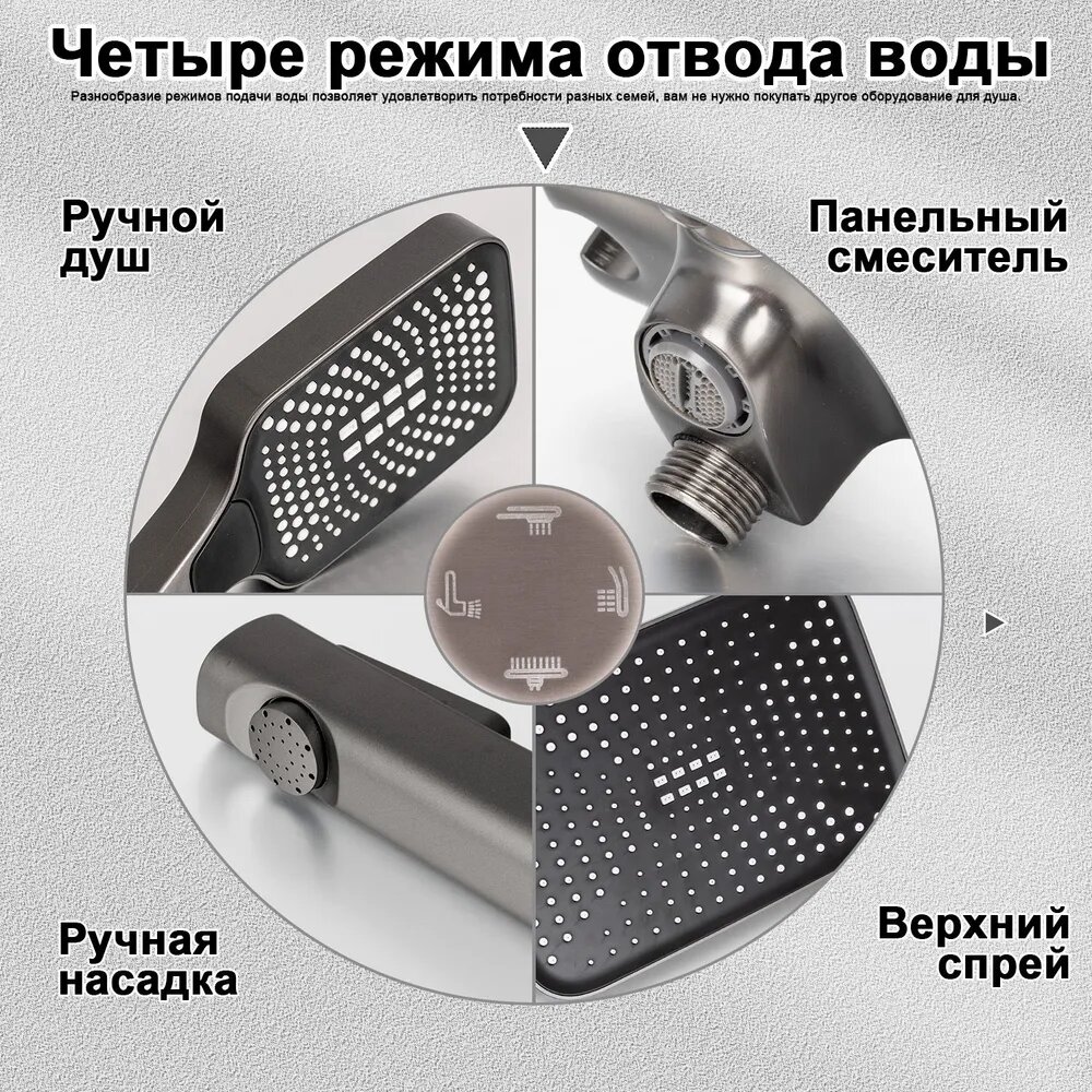 Душевая система с тропическим душем, набор для ванной комнаты, шланг для душа,4 режима, серый интересное: